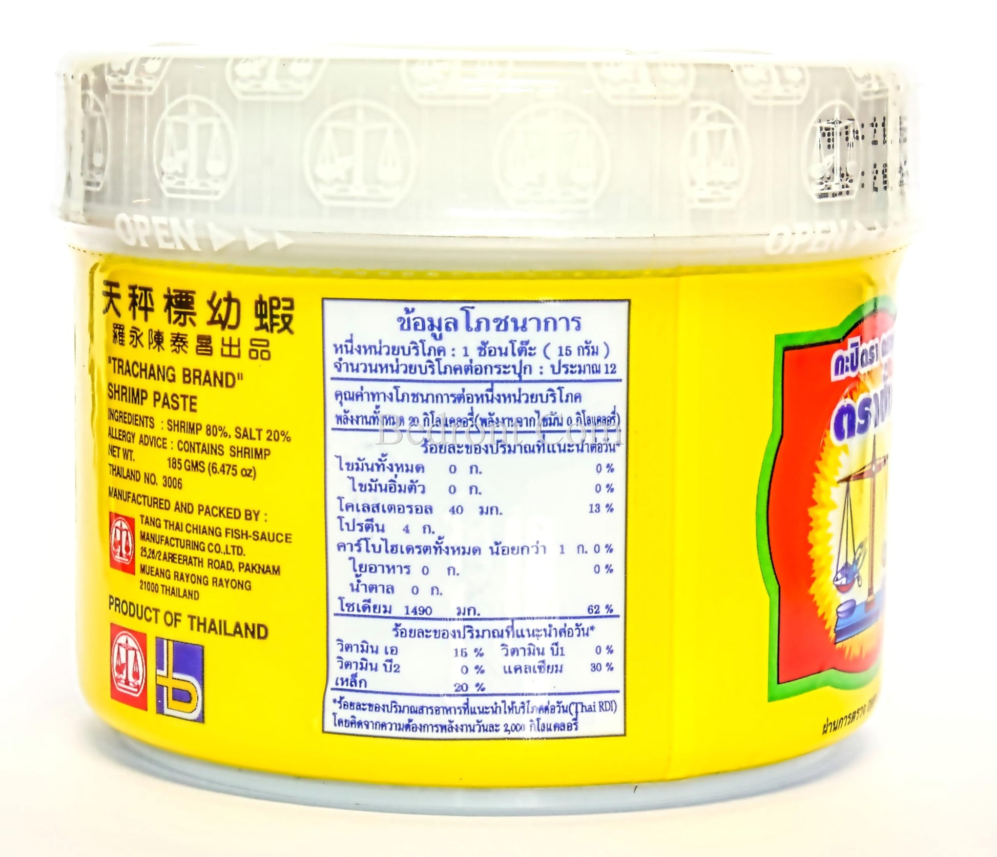 - Q: What is the size of the Bedront Tra Chang Thai Shrimp Paste jar? A: The Bedront Tra Chang Thai Shrimp Paste comes in a convenient 3.2 oz (90g) jar. This size is perfect for multiple culinary creations, allowing you to enjoy the authentic flavors of Thai cuisine without taking up too much space in your pantry.