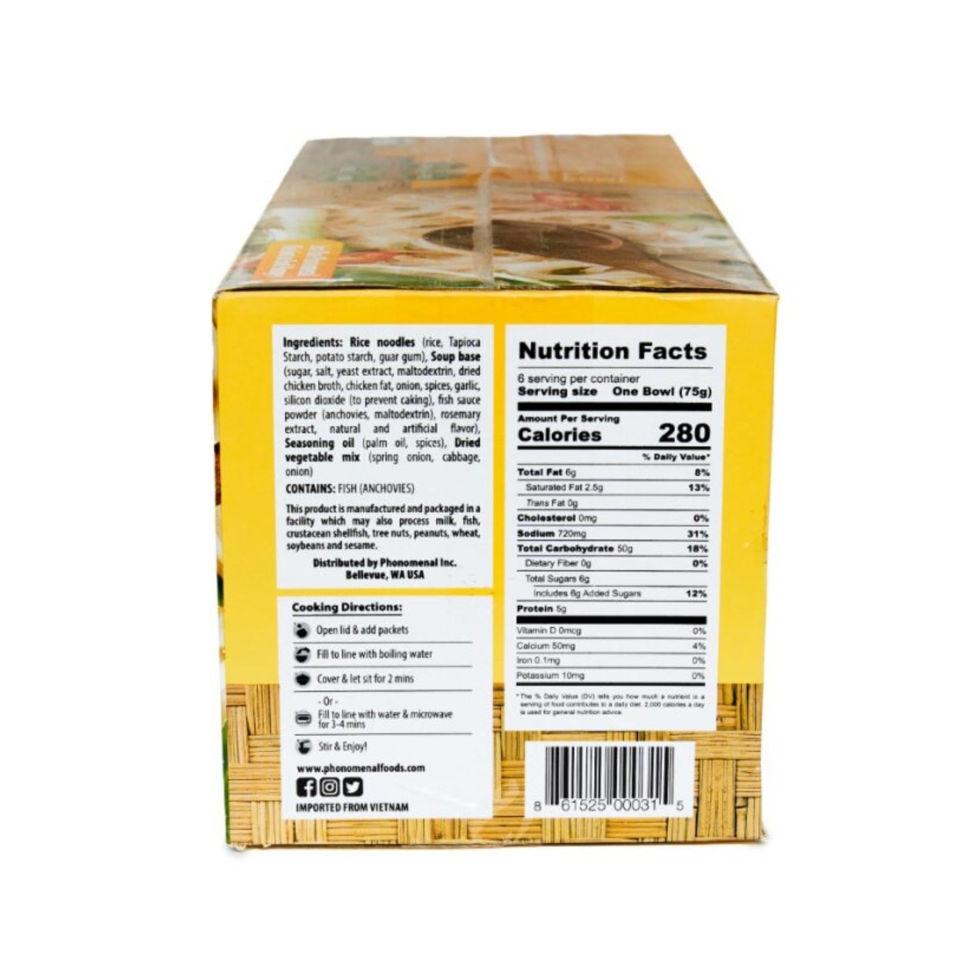 Phonomenal Restaurant Quality Style On-the-go Vietnamese Beef - bo, Chicken - ga, Vegetable-chay Instant Noodle Soup| Pho Noodles, Gluten Free, and Soup Bowls (6 Bowl in a Pack, Chicken)