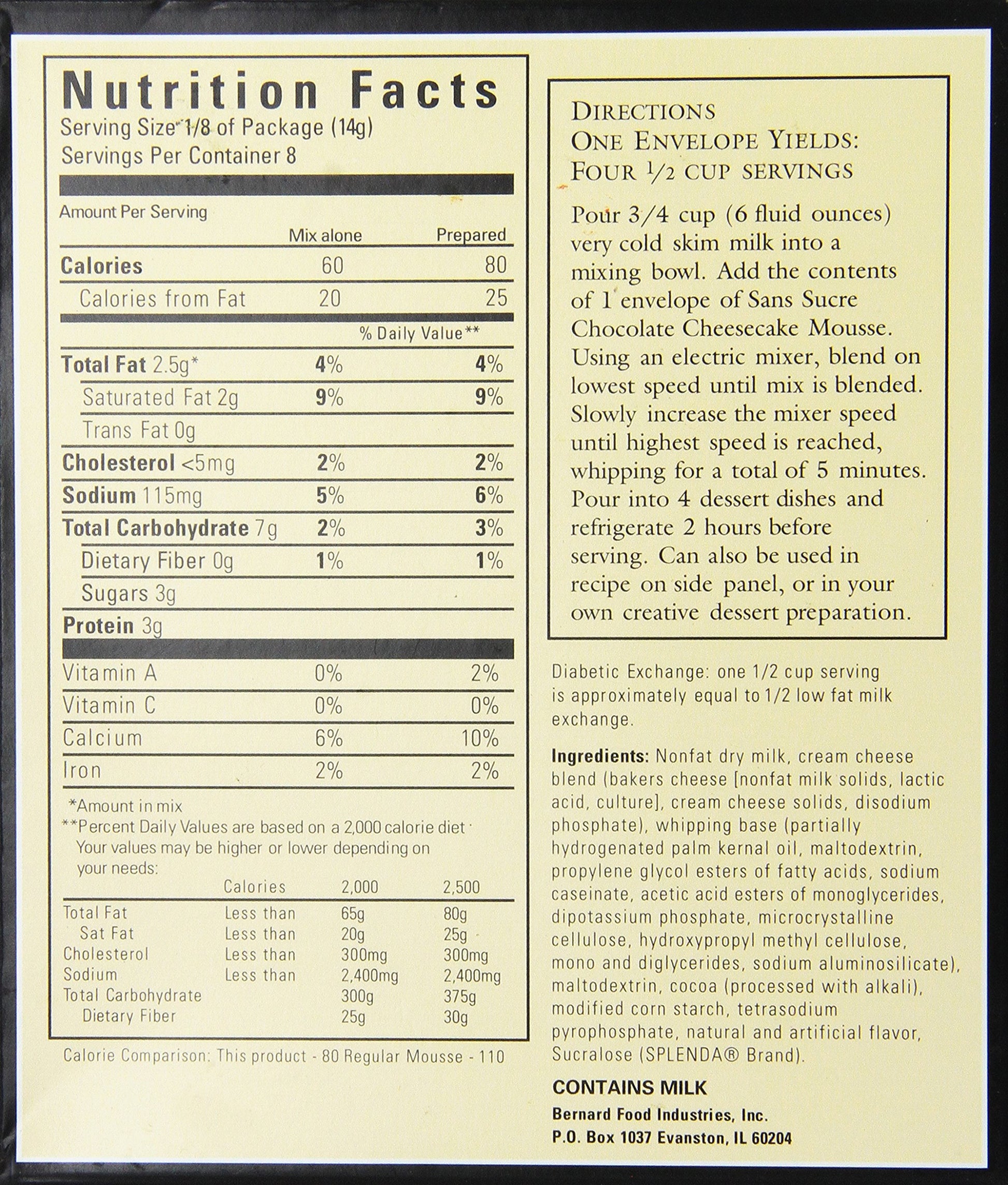 SANS SUCRE Chocolate Cheesecake Mousse Mix - Sugar Free and Gluten Free
