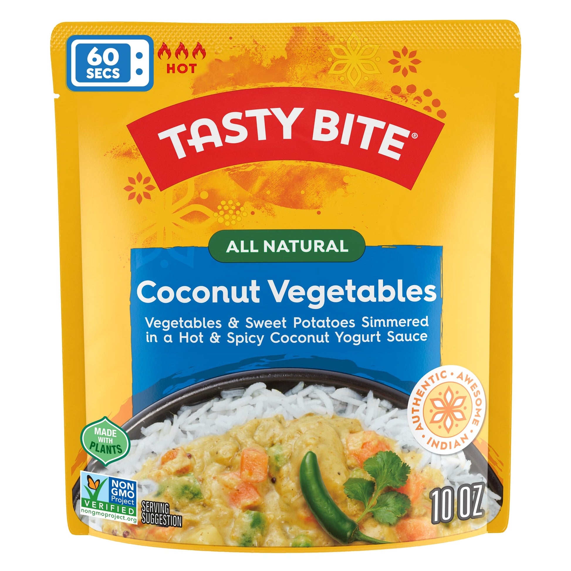- Q: How do I prepare Tasty Bite Hot & Spicy Coconut Vegetables? A: This ready-to-eat entrée is incredibly convenient. Simply microwave the package for just 60 seconds and enjoy a delicious Indian meal without any prep or mess. It's perfect for a quick office lunch or family dinner.