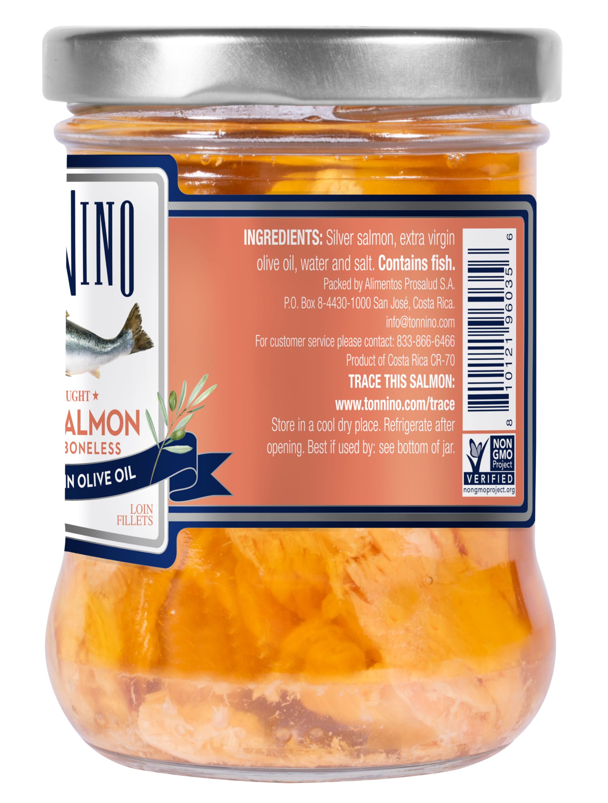 Tonnino Salmon Silver Fish - Extra Virgin Olive Oil - Pack of 6 - Skinless & Boness - Alternative to Tuna - Protein Snacks - Rea