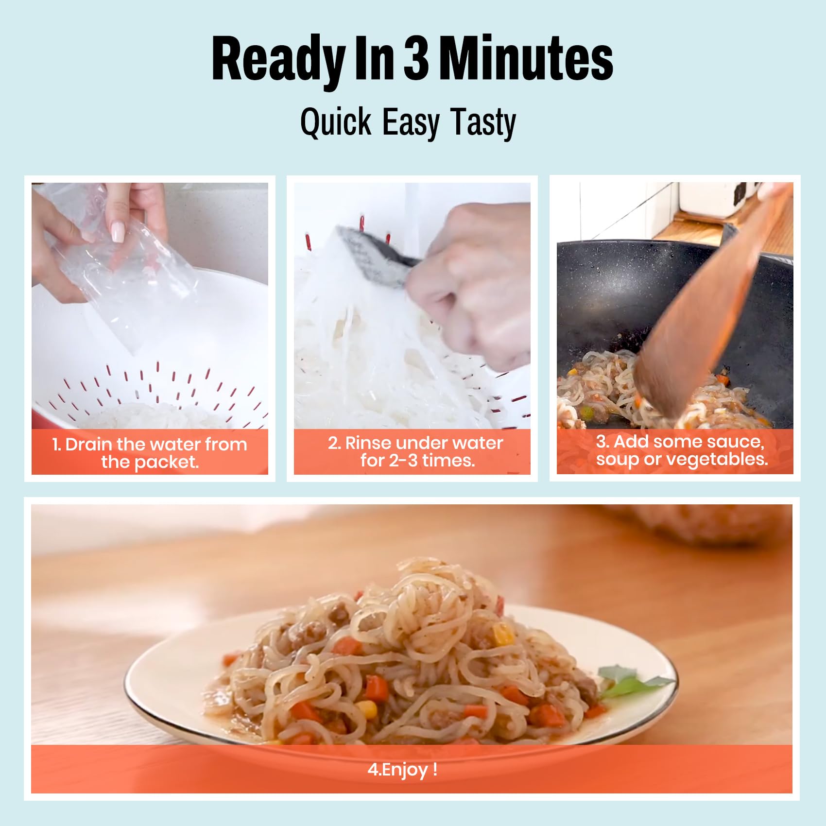 Q: How do I prepare VOLO VERO Konjac Noodles?A: Preparing VOLO VERO Konjac Noodles is simple. Just rinse them under cold water, heat them for a few minutes, and they are ready to enjoy in your favorite dishes.
