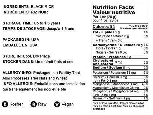- Q: Is Food to Live Black Rice suitable for a vegan diet? A: Absolutely! Food to Live Black Rice is 100% vegan, kosher, and raw, making it a perfect addition to any vegan diet. It provides a hearty source of plant-based protein and essential nutrients.