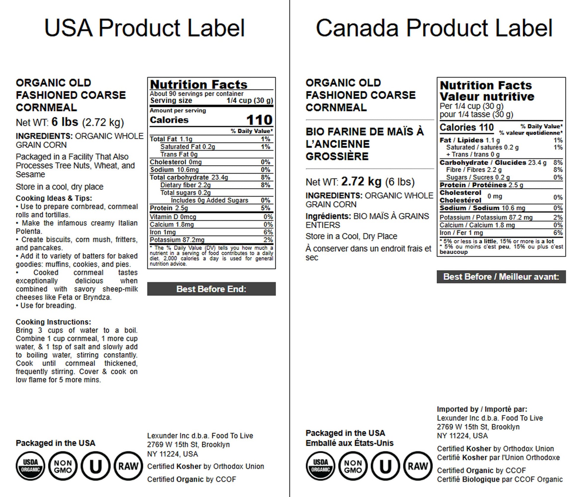 Organic, Kosher, Raw & Vegan: Food To Live Old Fashion Cornmeal Is 100% Raw, Certified Organic, And Kosher. It Is Also Vegan-Friendly, Trans-Fat, And Cholesterol-Free. | Made From Whole-Grain Corn: Food To Live Old Fashioned Cornmeal Is Made By Stone Grinding Whole-Grain Corn Into A Fine Texture, Meaning All The Parts Of The Grain Along With Their Nutrients Are Preserved. | Highly Nutritious: Cornmeal Is A Wonderful Source Of Protein And Fiber That Will Keep You Filled For A While. Besides, It Is Rich In Minerals Like Magnesium, Thiamin, Phosphorus, Iron, Potassium, And Selenium. | Versatile Uses: With Our Organic Cornmeal Bake Soft And Buttery Cornbread, Cook Polenta, Or Serve As A Side Dish. Use As Crispy Coating When Frying Meat, Fish, Or Veggies. Make Your Breakfast More Diverse With Cornmeal Porridge Or Cornmeal Pancakes. | Wheat Flour Substitute: In Your Baked Goodies, You Can Fully (In 1:1 Proportion) Or Partially Replace Wheat Flour With Our Finely Milled Cornmeal. Create Cakes, Pies, Cookies, And Muffins.