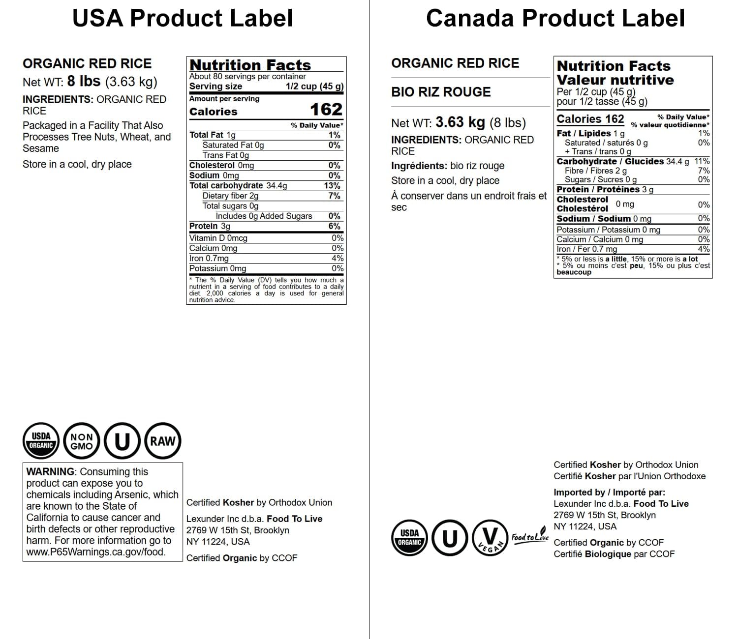 - Q: How does Food to Live Organic Red Rice differ from other rice varieties? A: Food to Live Organic Red Rice stands out due to its unremoved husk, which retains many beneficial nutrients and minerals. This variety offers a unique bready and nutty taste, along with a rich texture that differs from more common white rice options.