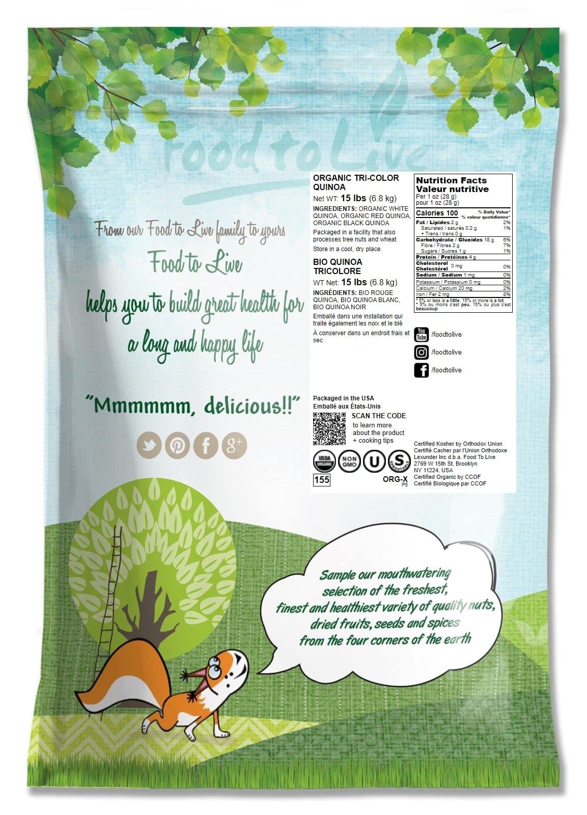 Q: What makes Food to Live Organic Tri-Color Quinoa different from regular quinoa?A: Food to Live Organic Tri-Color Quinoa stands out due to its unique blend of three quinoa varieties, providing diverse textures and flavors. It is also certified organic, non-GMO, and packed with essential vitamins and minerals.