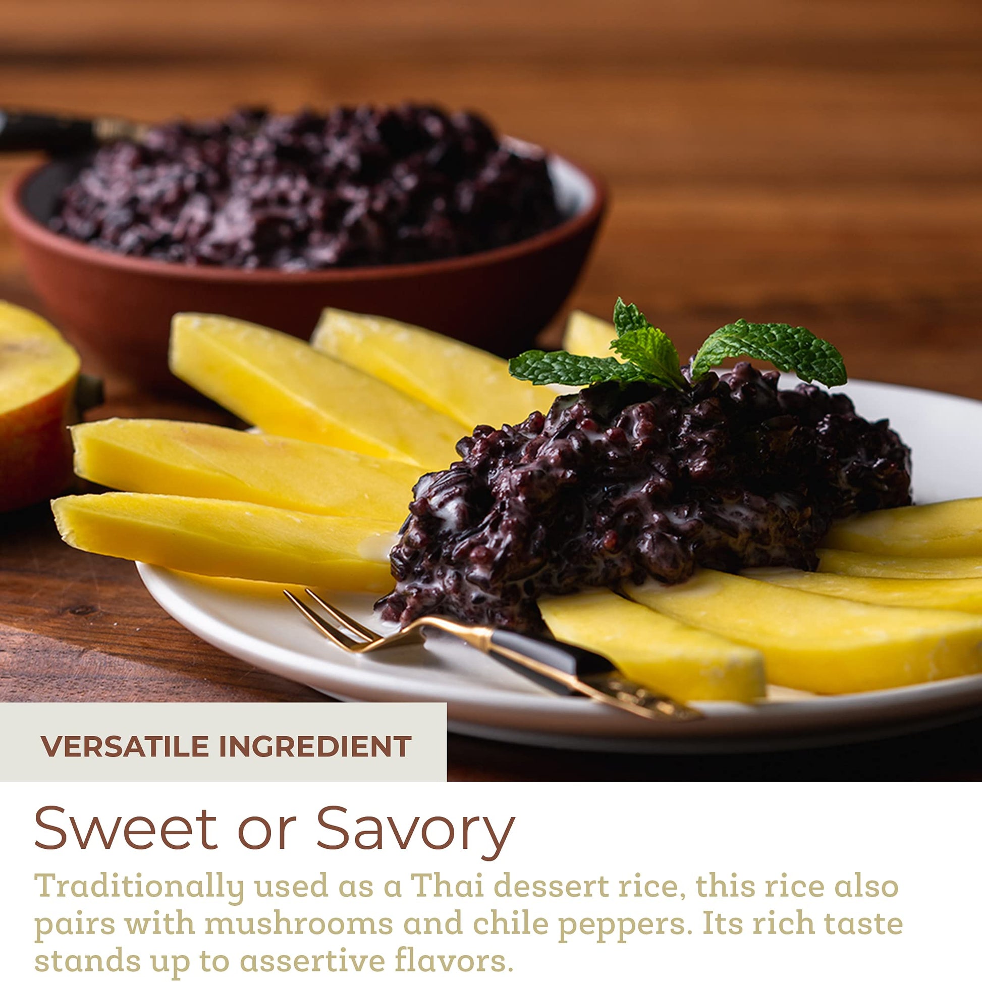 - Q: What dishes can I make with purple sticky rice? A: Purple sticky rice is versatile and can be used in various dishes. It's traditionally served as a dessert with sweet syrup, coconut milk, or fresh fruit. Additionally, it pairs well with savory dishes, including mushrooms and chile peppers, due to its rich flavor profile.