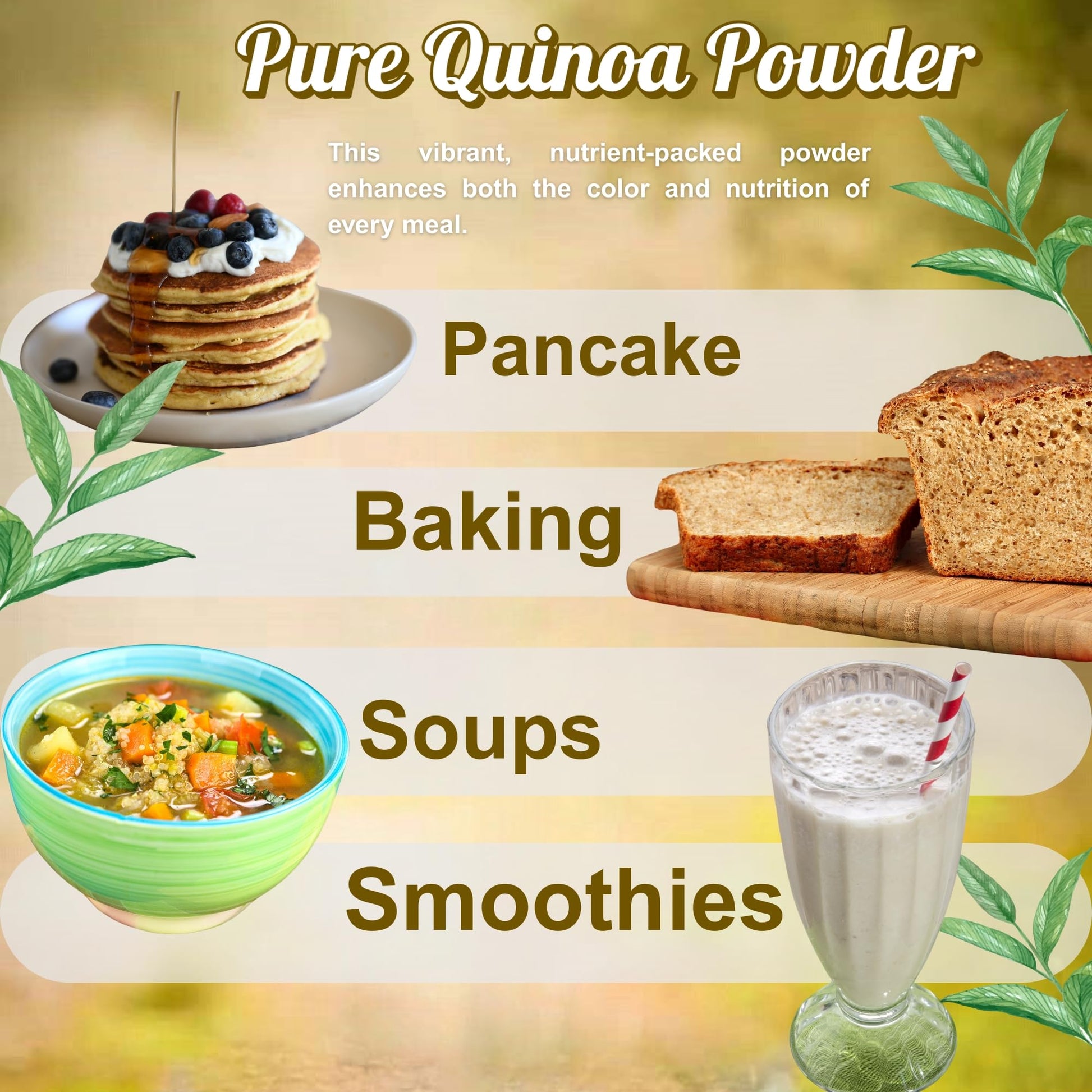 Q: How can I incorporate quinoa powder into my diet?A: You can mix HANAN MIKHUY Quinoa Powder into smoothies, yogurt, or oatmeal. It also works well as a flour replacement in baking recipes, pancakes, and soups, adding a nutritious boost to your meals.