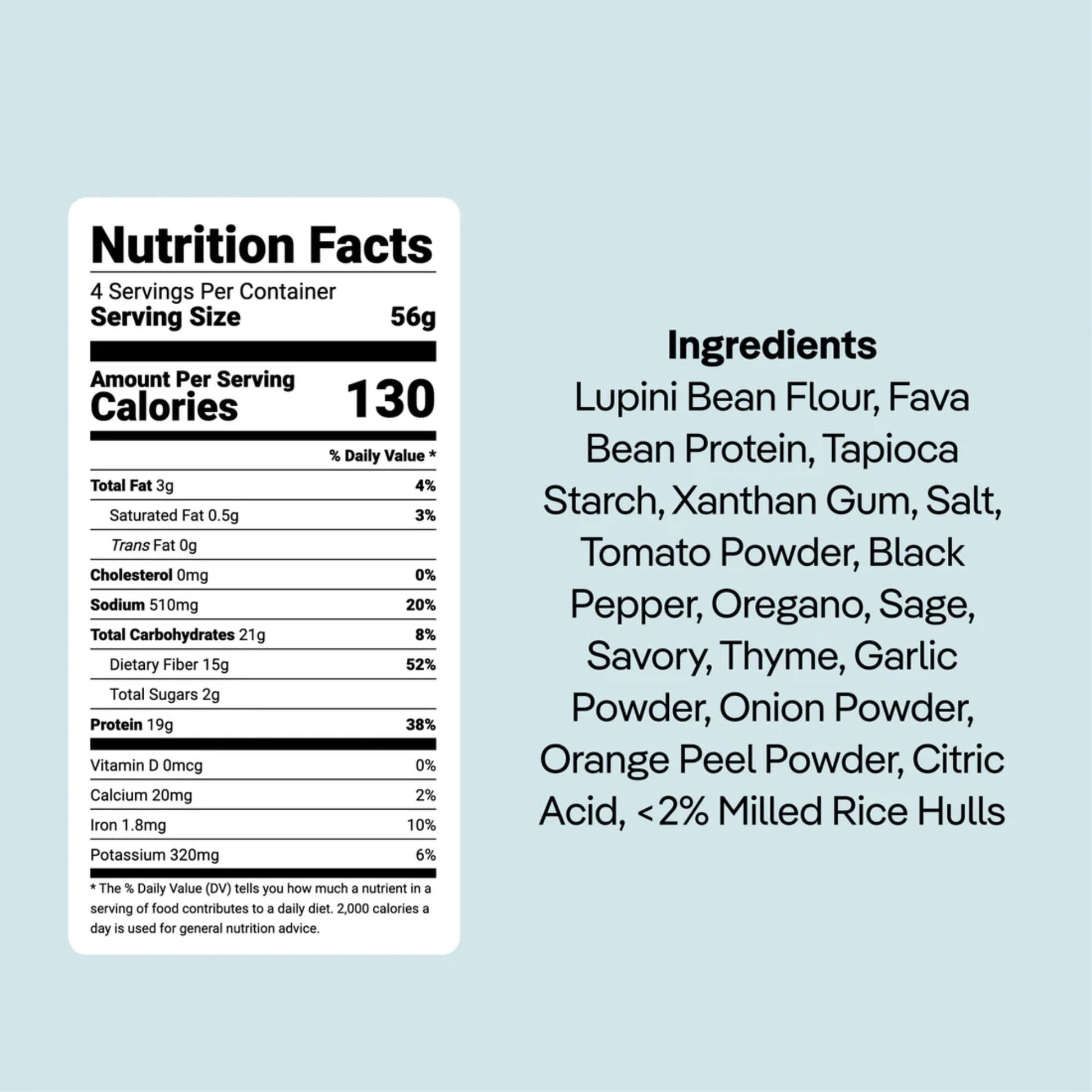 Q: What are the main ingredients in Kaizen Low Carb Keto Mediterranean Rice?A: Kaizen Low Carb Keto Mediterranean Rice is made primarily with high fiber lupin flour, seasoned with aromatic herbs such as oregano, thyme, and garlic, making it a flavorful and nutritious option for your meals.