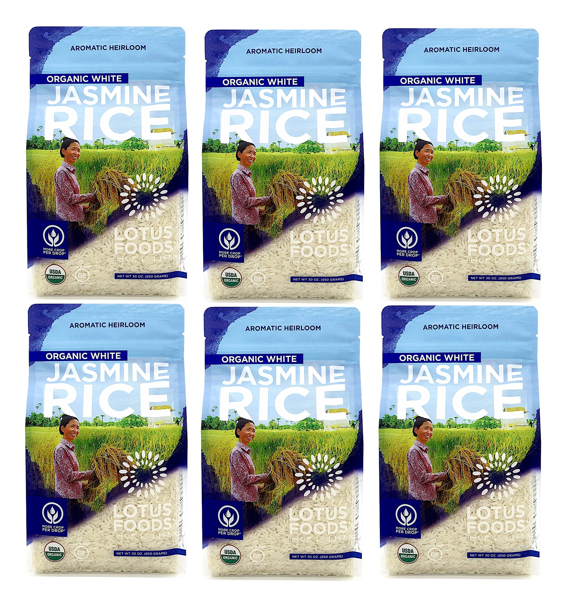 Lotus Foods Organic White Jasmine Rice, Gluten Free, 30 Ounce (Pack of 6)
