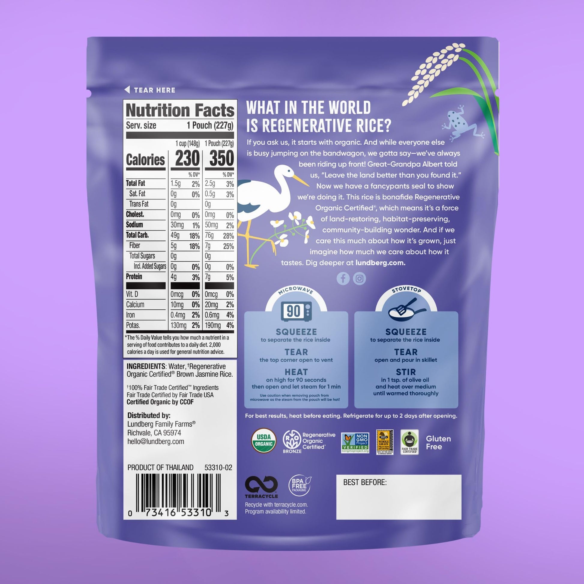 Q: What makes Lundberg rice different from other rice brands?A: Lundberg rice is unique due to its sourcing from small, remote farming communities in Thailand, which gives it an aromatic fragrance and slightly sweet flavor. It's also USDA Certified Organic, Non-GMO Project Verified, and Fair Trade.