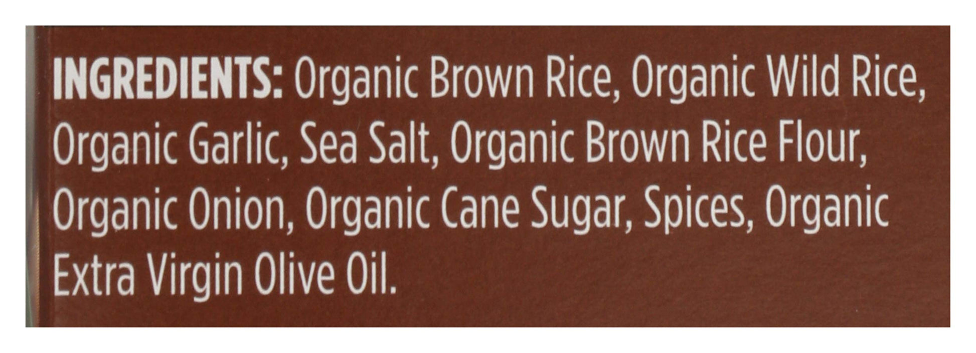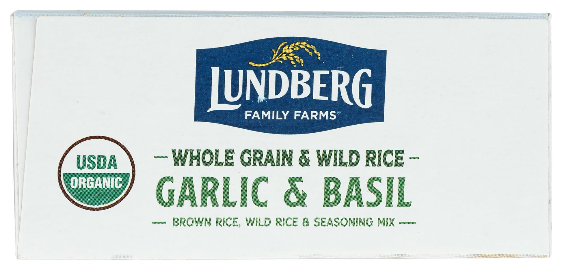 Q: What ingredients are included in Lundberg Organic Rice & Seasoning Mix?A: Lundberg Organic Rice & Seasoning Mix includes organic whole grain brown rice, wild rice, garlic, basil, and olive oil, providing a savory balance of flavors.