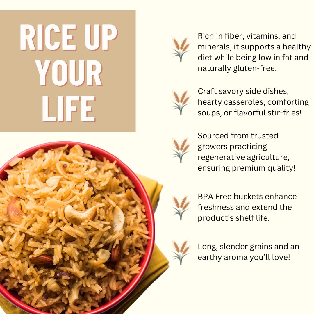 - Q: What makes the packaging of this rice superior? A: The rice is packaged in a 6-gallon, BPA-free bucket that features a food-grade liner, airtight gasket-sealed lid, and oxygen absorbers. This design prevents spoilage and growth of aerobic pathogens, preserving the rice's natural flavor and nutritional value.