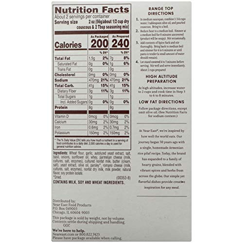 - Q: How do I prepare Near East Basil & Herb Pearled Couscous? A: To prepare Near East Basil & Herb Pearled Couscous, simply bring water to a boil, add the couscous and seasoning, then cover and remove from heat. Let it sit for about 5 minutes, fluff with a fork, and enjoy as a tasty side dish.