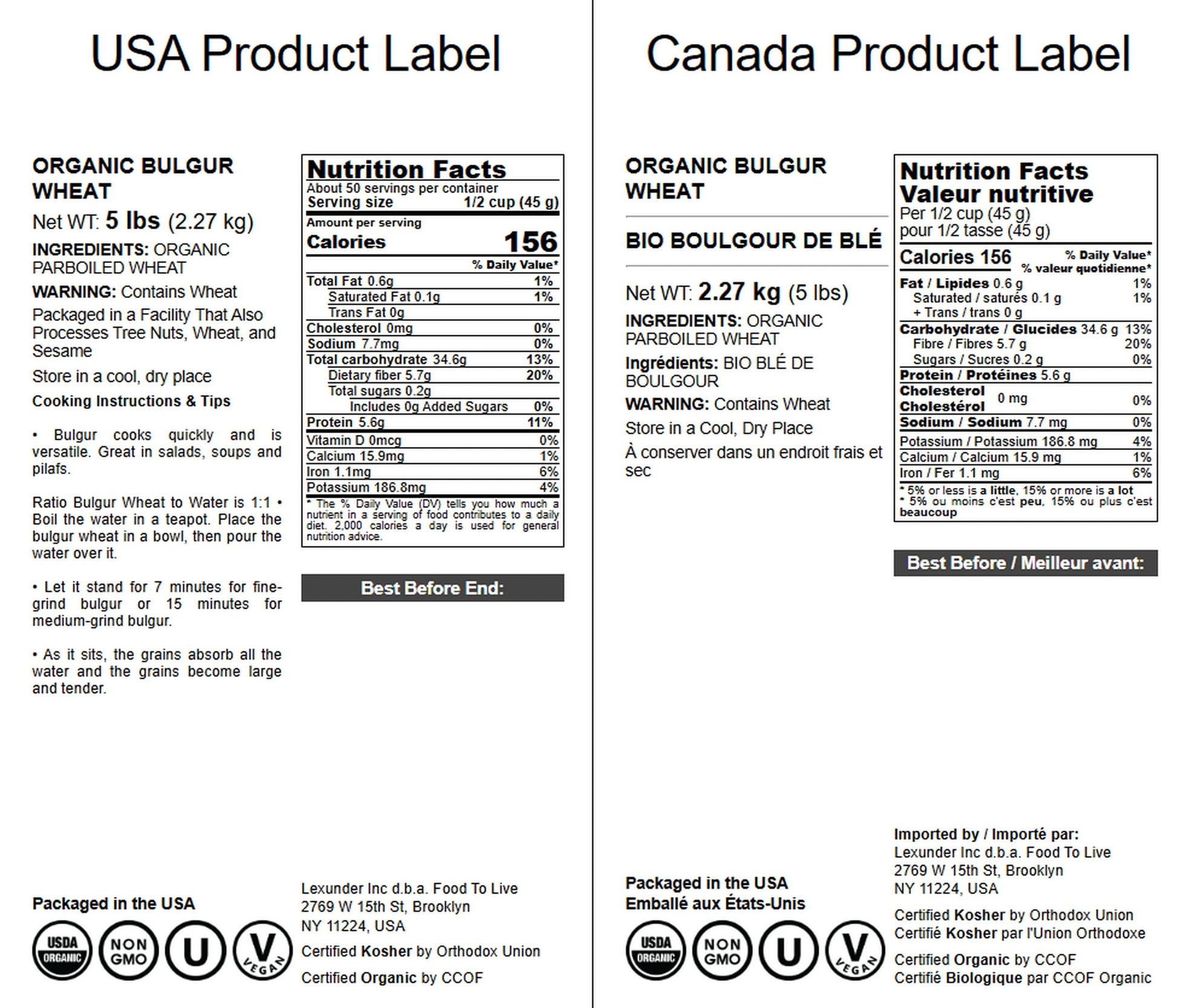 Q: How do I cook Organic Bulgur Wheat?A: Cooking Organic Bulgur Wheat is simple and quick. Just combine 1 cup of bulgur with 2 cups of boiling water or broth, cover, and let it sit for 12-15 minutes until it absorbs the liquid. Fluff with a fork and enjoy!