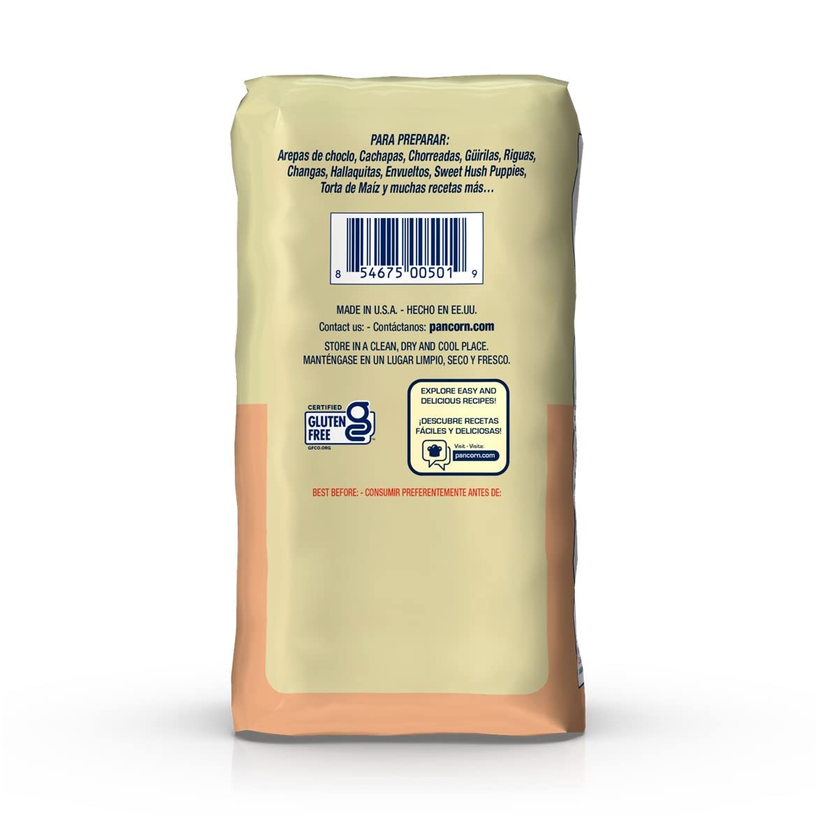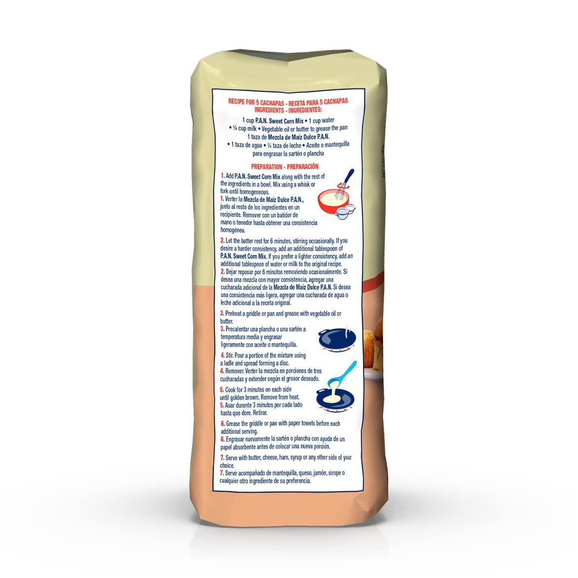 Make Original And Tasty Latin-American And Caribbean Food In Your Kitchen With Pan Sweetcorn Mix. It Simplifies The Preparation Of Corn-Based Foodwhile Preserving Its Delicious Flavor. The P.A.N. Sweetcorn Mix Is Made With Tender Sweetcorn, Giving You The Perfect Mix For Your Corn Recipes.Prepare Cachapas Or Arepas De Choclo, Corn Flatbread, Sweetcorn Bread, Sweet Buns, Sweetcorn Croquettes, Stuffed Rolls And Much More.How To Prepare Cachapas- 1 Cup P.A.N. Sweet Corn Mix- 1 Cups Water- Cup Milk- 1 Teaspoon Vegetable Oil- Shortening Or Vegetable Oil To Grease The Panpreparation1. Pour Water, Milk And Oil Into A Bowl. Slowly Add P.A.N. Sweet Corn Mix And Stir Until Homogeneous. Let The Batter Rest For 5 Minutes.2. Pour A Portion Of The Batter With A Ladle On A Greased Hot Pan Or Griddle And Spread It To Make 5-6 Inch Wide Discs.3. Cook For 3 Minutes On Each Side Until Golden Brown.4. Side With Butter And Fresh White Cheese, Or Any Other Filling Of Your Choice.Ingredients Include Pre-Cooked Yellow Corn Meal, Powdered Cellulose, Cane Sugar, Corn Bran, Salt, Soy Lecithin, Riboflavin And Folic Acid. It May Containtraces Of Soy. Keep In A Clean, Dry Place. 100% Gluten Free, Without Preservatives, Artificial Colors Or Flavorings.About Usthe Product Was Intended To Bear A Name That Represented All That An Arepa Meant, Which Is That It Was To Be The ''Venezuelan Bread'' Or ''Pan'' In Spanish.It Was Thus That It Came Be Called P.A.N., Acronym For Productos Alimenticios Nacionales.On December 10, 1960 P.A.N. Was Launched And Achieved Great Success, From A Complete Satisfaction Of The Venezuelan Consumer.Today, P.A.N. Is Found In More Than 60 Countries, Bringing The Delicious Flavor Of Corn To Consumers In An Easy And Practical Way To Prepare Their Favoritecorn Based Recipes.