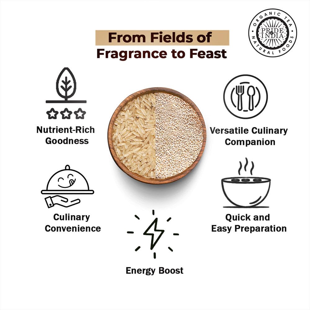Pride Of India'S Exclusive Basmati Rice And Royal Quinoa Are Cultivated In The Fertile Areas Of Himalayas And Andes.This Power Packed Food Is A Fusion Of Ancient Staple Diets Of The Native American Lands And The Eastern World. This Nutritious Wholegrain Mix Has A Natural Buttery Taste Of Quinoa And Aroma Of Extra Long Basmati Rice. It Contains Complete Vegan Proteins, Dietary Fiber And Healthy Carbohydrates.