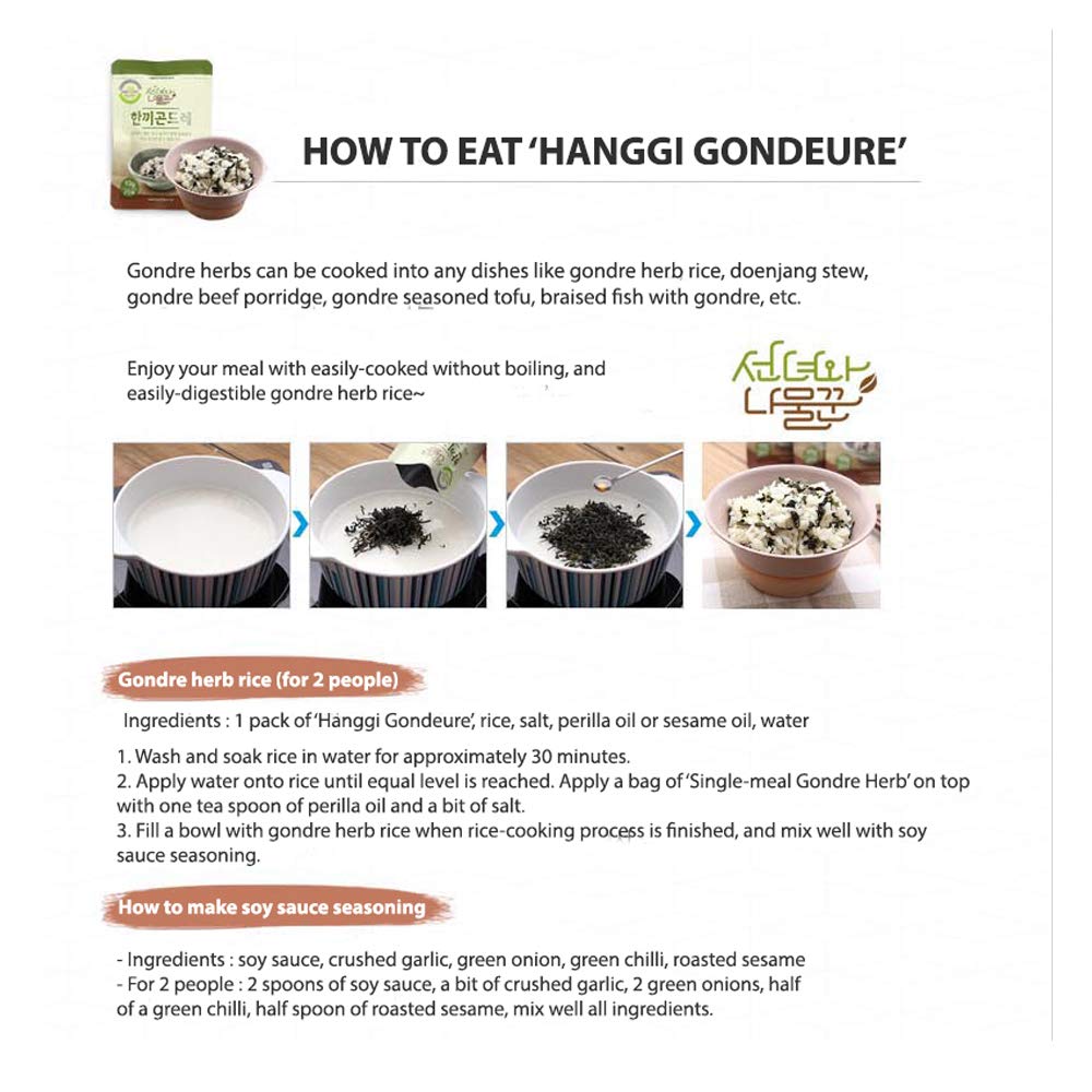 - Q: What is Pyeongchang Hanggi Gondre and how is it used in cooking? A: Pyeongchang Hanggi Gondre is a type of dried Korean namul, specifically Goryeo thistle, grown in the mountains of Pyeongchang. It can be used in various dishes, including bibimbap, soups, and salads, and is especially praised for its unique flavor and health benefits.