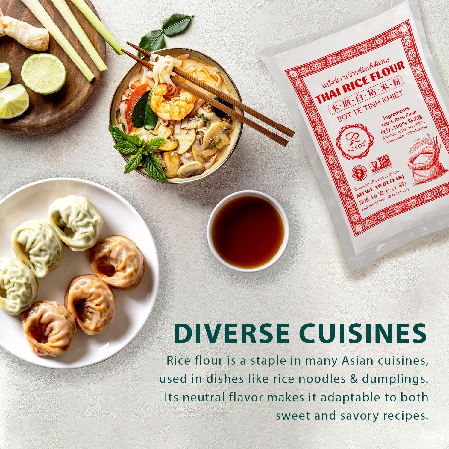 Soeos Thai Rice Flour Is Created From Premium Thai Rice And Is Precisely Milled. It Is A Flexible Ingredient That Is Frequently Utilized In Both Contemporary Cookery And Traditional Thai Recipes Because Of Its Smooth And Light Texture. Whether It'S For Thickening, Baking, Or Frying.