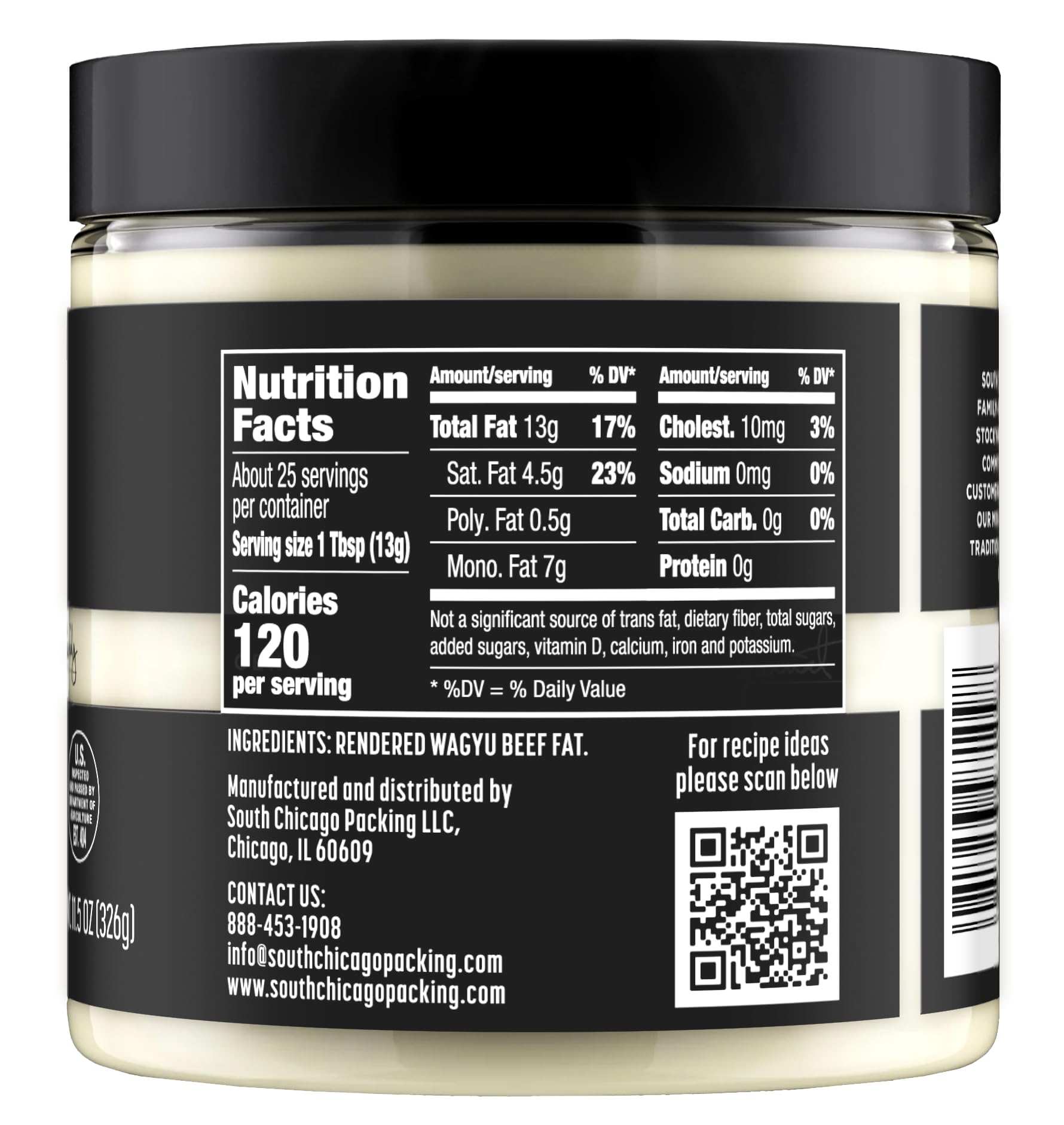 South Chicago Packing Is A 5Th Generation Family-Owned Business Born In The Historic Stockyards Of Chicago. We Take Pride In Our Commitment To Excellence, Dedication To Customers, And Passion For All Things Culinary. Our Mission Is To Maintain This 100 Year-Old Tradition, Which Is Why Our Specialty Fats Are Sourced From Only The Best. Wagyu Beef Tallow Is A Cooking Oil That Elevates All Kinds Of Food - Simply Fried Eggs, Every Chicken Dinners, Summer Vegetables, Steaks And Meats And So Much More. Our Beef Tallow Is An Easy To Cook With, Easy To Grab Pantry Staple. This Is Your Go To Product For Rich, Full Bodied And Craveable Flavor. Beef Tallow Is A Healthy Cooking Fat With No Seed Oils, Is Gluten Free, Keto Friendly And Paleo Friendly.