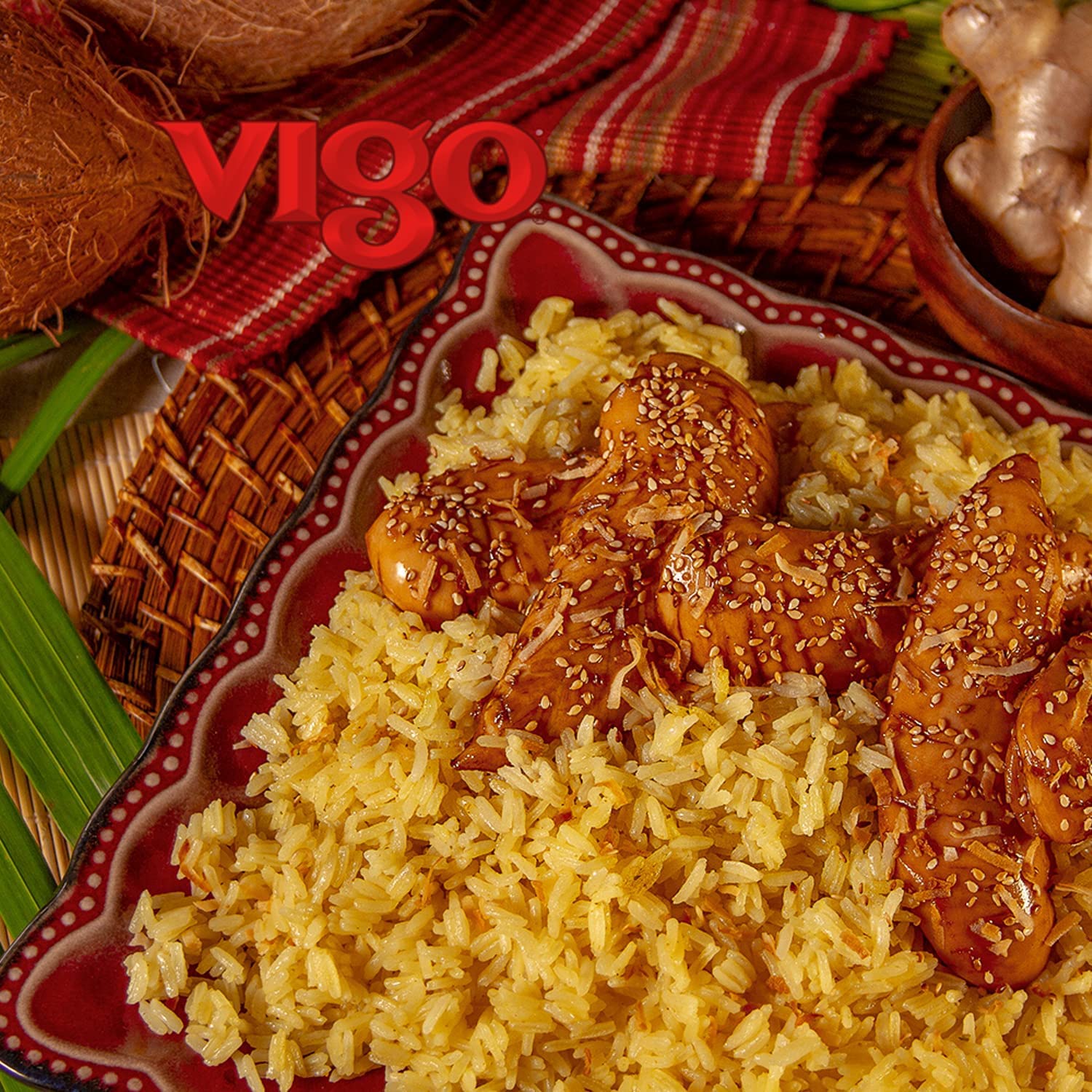 Vigo coconut ginger Rice is made with imported jasmine rice, real ginger and sea salt Perfect with Thai style stir fries or curries, it also pairs as an interesting side dish for grilled fish or seafood, beef and pork It is gluten free, has no artificial flavors, colors or preservatives and no added MSg Healthy, delicious and with only a 20 minute cook time, Vigo coconut ginger Rice is perfect for today time and health conscious consumers