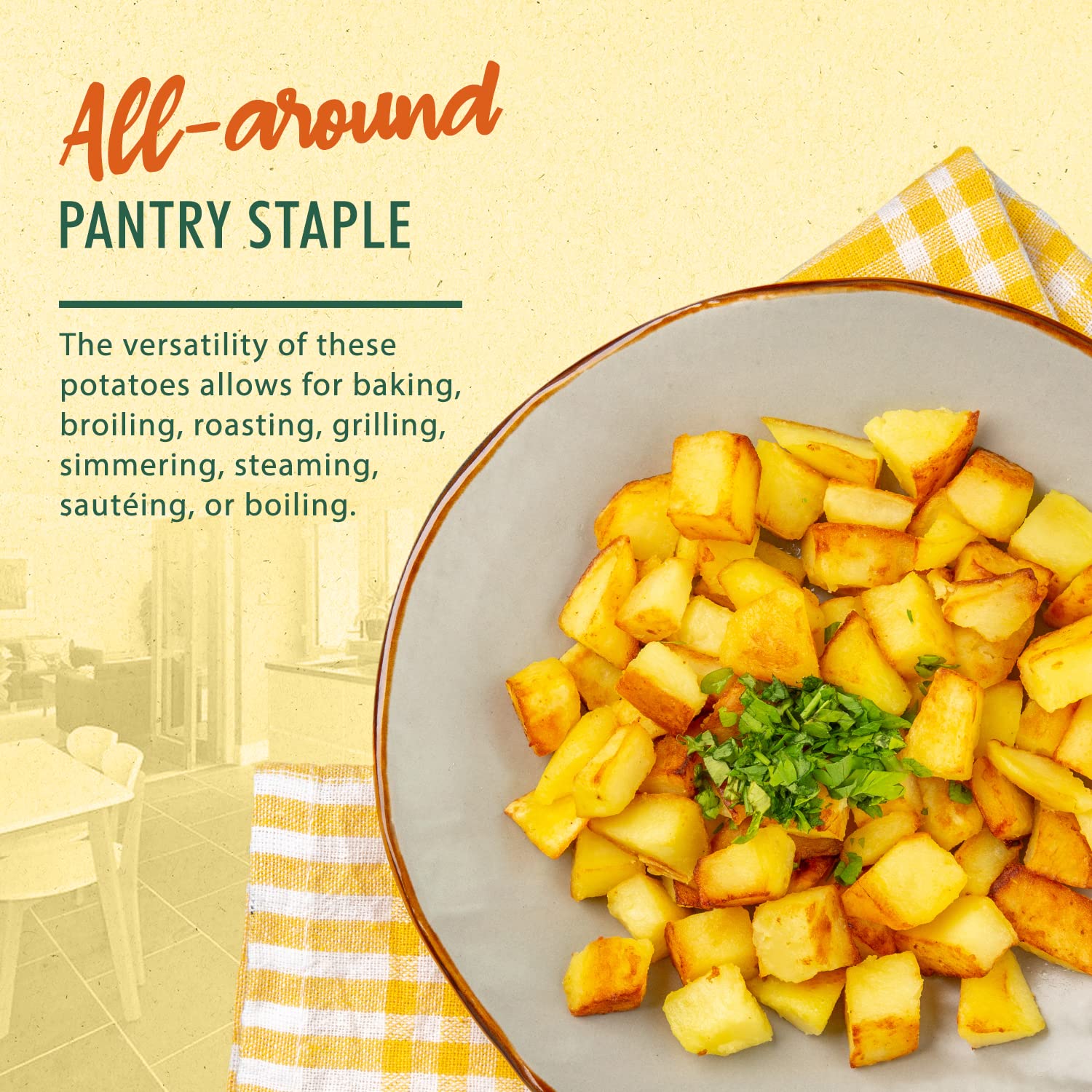 Q: What cooking methods can I use for Melissa's Baby Dutch Yellow Potatoes?A: Melissa's Baby Dutch Yellow Potatoes are versatile and can be cooked in various ways including baking, broiling, roasting, grilling, simmering, steaming, sautéing, or boiling, depending on your preference.