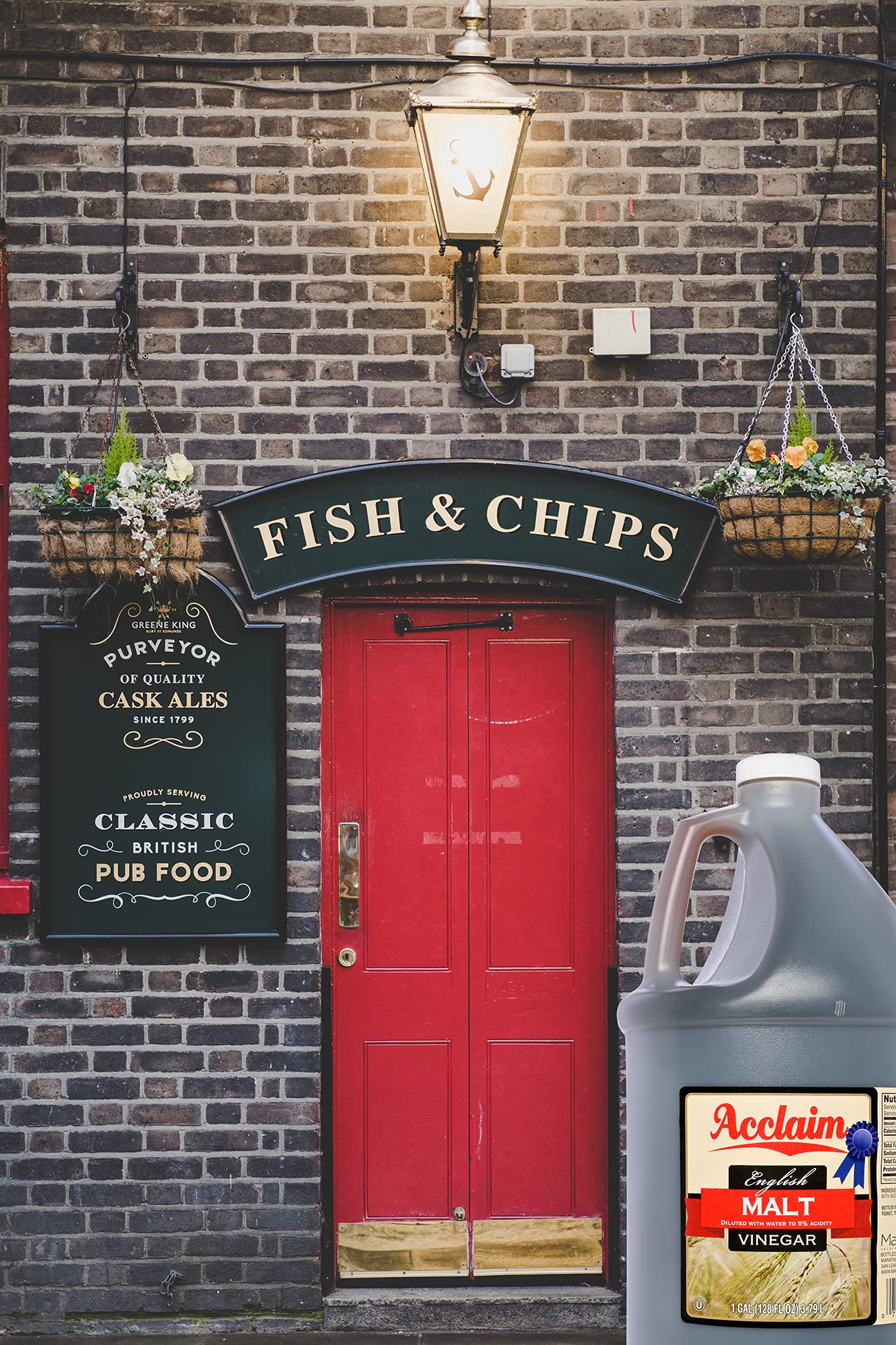 Q: What are the main uses for Acclaim English Malt Vinegar?A: Acclaim English Malt Vinegar is versatile and can be used for seasoning, marinades, cooking, salad dressings, and dips. It pairs excellently with traditional dishes like Fish and Chips and enhances the flavor of chutneys and bean salads.