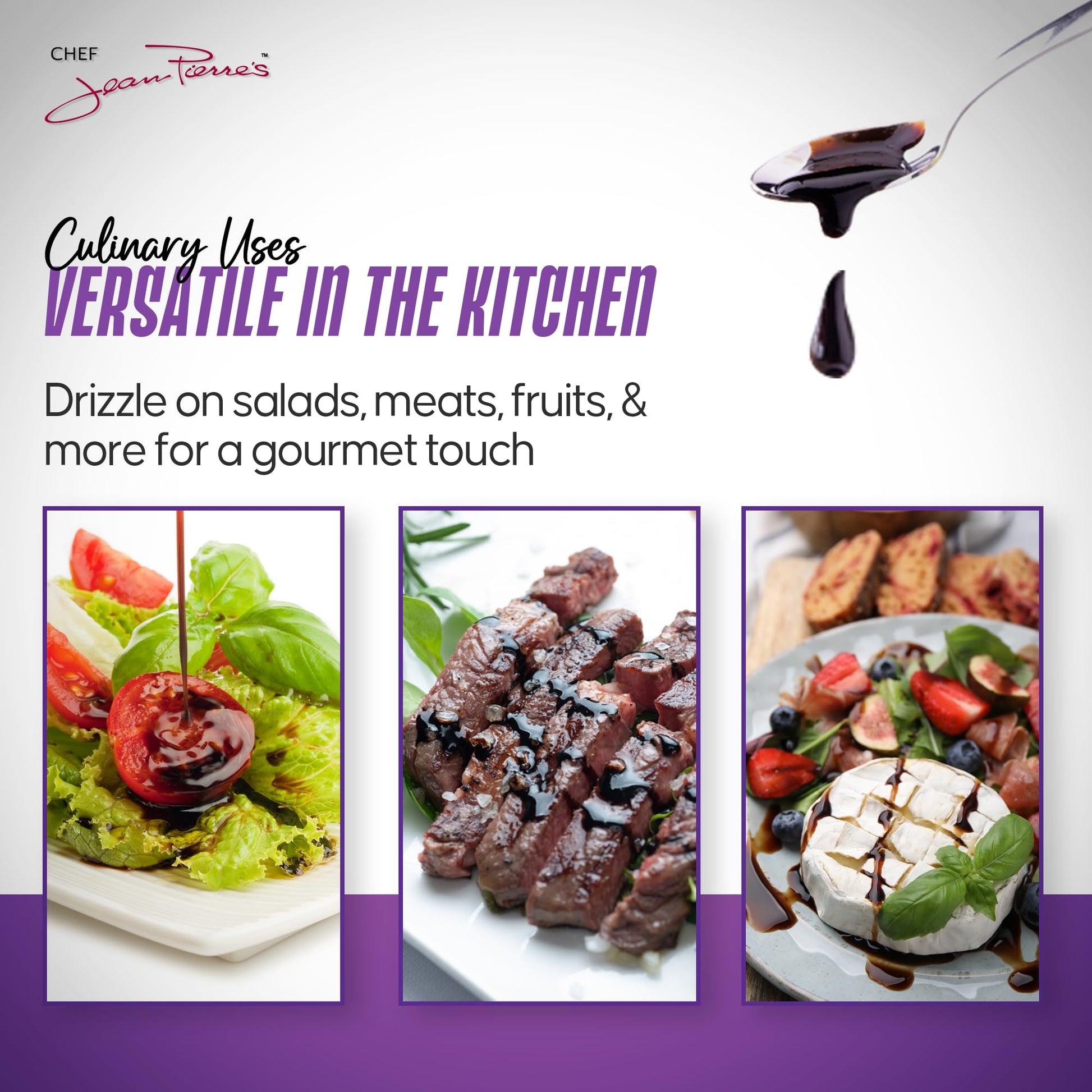 - Q: What recipes can I use Chef Jean Pierre's Italian Balsamic Vinegar in? A: Chef Jean Pierre's Italian Balsamic Vinegar is incredibly versatile and can enhance a variety of dishes. Use it in salads, marinades, glazes, and even desserts to add a sweet and tangy flavor. Its complexity makes it suitable for both gourmet recipes and everyday meals.