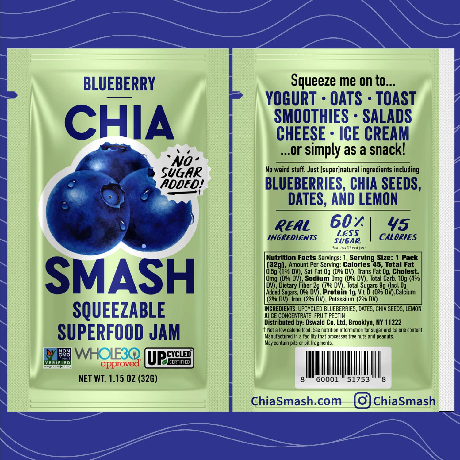 Q: How should I store the Chia Smash Blueberry Jam packets?A: The single-serve packets of Chia Smash Blueberry Jam are convenient for on-the-go use. Store them in a cool, dry place, and once opened, consume them within a reasonable time for the best flavor.