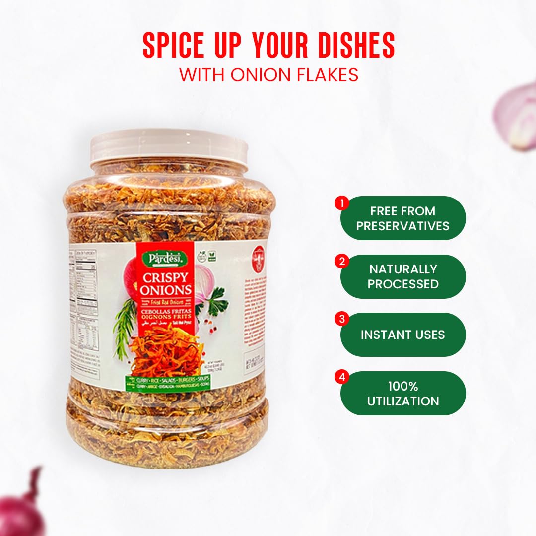 - Q: Are these fried onions made with real ingredients? A: Yes, our Crispy Red Fried Onions are made with real red onions and contain no artificial preservatives or additives. This ensures a healthier snack option while providing a delicious crunch and bold flavor to your meals.