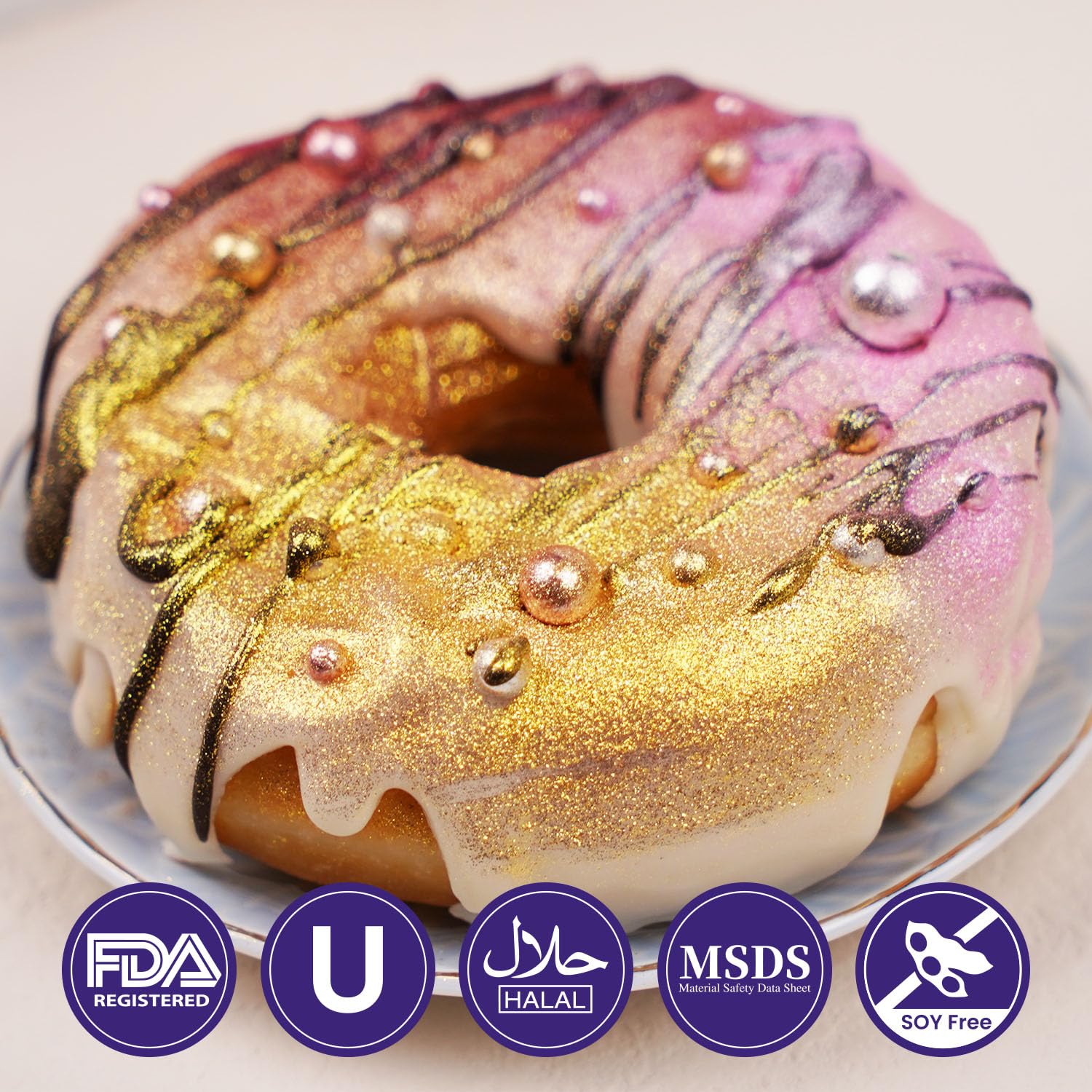 Food Safe: Made From All Natural Mica Based Pearlescents, 100% Edible Food Grade Colorants. No Additives Are Added. In Addition, Food Grade Edible Glitter Has Been Developed For Enthusiasts Who Like To Make Their Own Cakes And Cocktails. Have Kosher And Halal Certification. Preservative Free, Nut Free, Sugar Free, Dairy Free, Chemical Free, Soy Free. | Easy To Use: It Is Recommended To Dry Brush Or Use To Mix With Alcohol, Vodka, Lemon Extract, Oil-Based Flavorings Then Brush By Spray Gun Or Dip By The Brush To Decorate The Food. The Edible Glitter, Not Only Can Be Used In Drinks, Such As Baking, Cakes, Chocolates, Macarons, Cookies, Etc. | Widely Used In Drinks: Edible Glitter Can Have A Shimmering Effect In Cocktails, Vodka, Alcoholic Drinks, Whisky, Tequila, Rum. Stirring Produces A Color Flashing Effect. And It Doesn'T Affect The Texture! | Shelf Life: Edible Glitter Has A Shelf Life Of 36 Months, See Bottle Or Package For Production Date. Edible Glitter Can Meet The Coloring Production Needs Of A Variety Of Bakery Products, With High Cost-Effective, Sealed Cap Can Ensure The Hygienic Needs Of Multiple Reuse, Each Use Only A Small Spoon. | Customer Service: If You Are Not Satisfied With Our Edible Glitter Or Service, Please Feel Free To Contact Us By Email In Time. We Always Do Our Best To Settle Your Problems And Inquiries.
