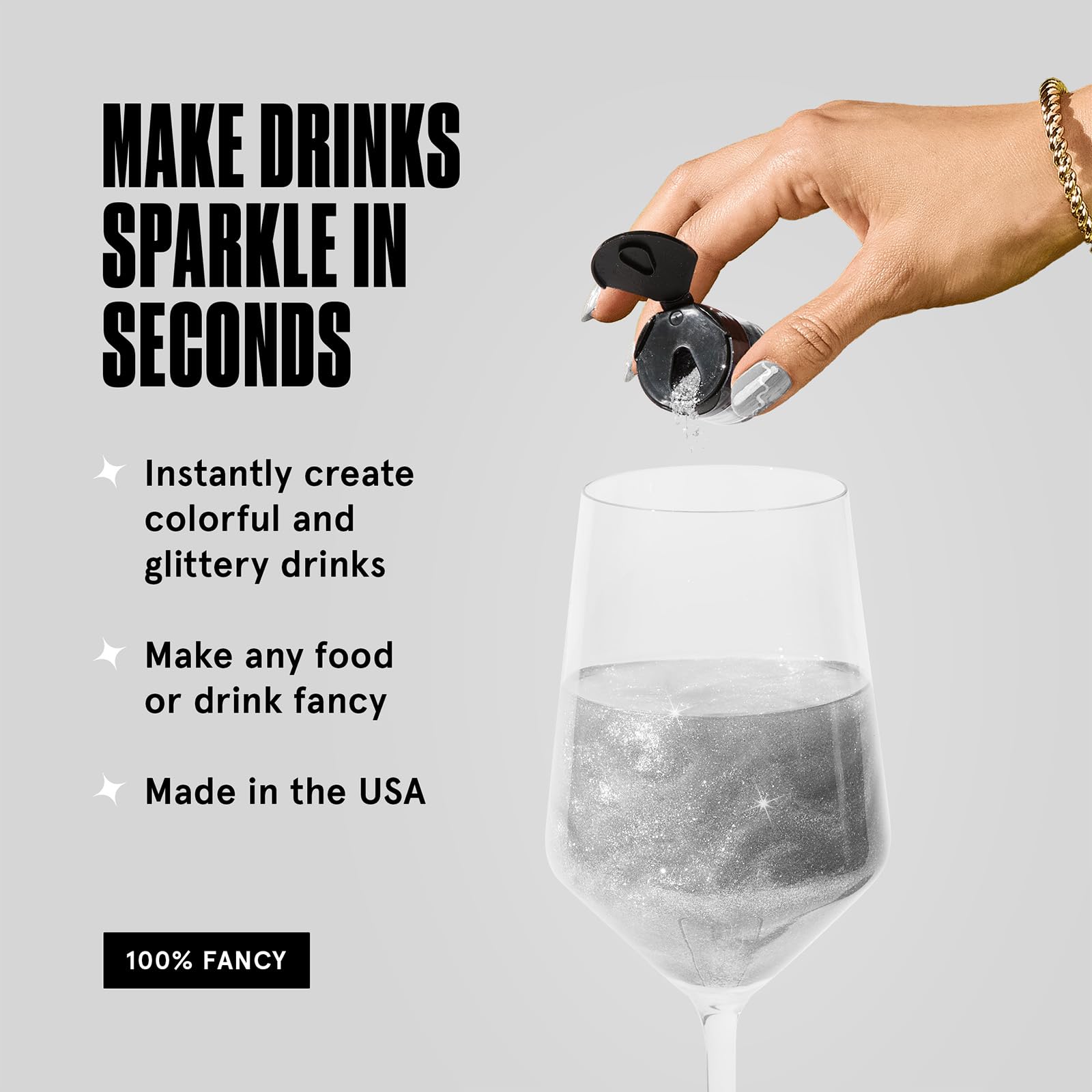 Fancy Edible Glitter Is A Fine Prismatic Powder Formulated For Both Food And Drink. Add Edible Glitter To Still And Carbonated Beverages And Spirits To Create A Glittery Hurricane, Or Dust Onto Desserts And Savory Items For A Sparkly Finish.