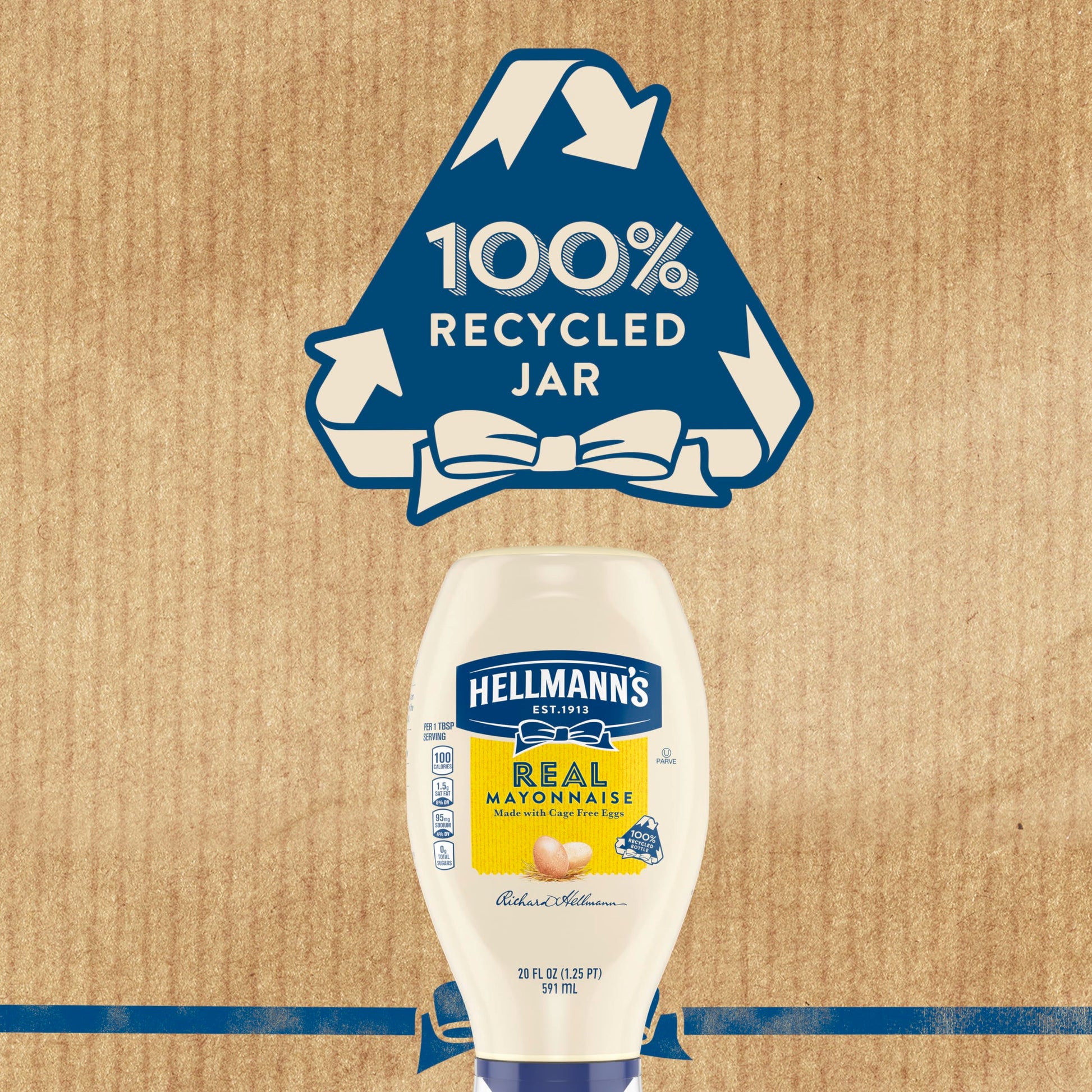 Product DescriptionHellmann's Real Mayonnaise is proudly made with real, simple ingredients like cage-free eggs, oil and vinegar. We know that to really ''Bring Out The Best,'' we need to do more than just taste great. Thats why our delicious Blue Ribbon Quality Mayonnaise is made with real eggs, oil and vinegar sourced from trusted American farms. And it comes in a convenient real mayo squeeze bottle that makes it easy to add it to your favorites. Even after 100 years, were still committed to using premium ingredients to craft the highest quality mayonnaise. It's simple. We use the finest, real ingredients in Hellmann's Real Mayonnaise. In fact, we use 100% cage-free eggs and are committed to 100% responsibly sourced soybean oil. Our authentic mayonnaise is rich in Omega 3-ALA (contains 650mg ALA per serving, which is 40% of the 1.6g Daily Value for ALA), and is also gluten-free and certified kosher. And nothing beats the taste of real mayo. Its the ideal condiment for spreading on sandwiches and wraps, grilling juicy burgers, mixing creamy dips, and preparing fresh salads. Use it to make outrageously delicious meals like our Parmesan Crusted Chicken and Best Ever Juicy Burger, and even turn your Thanksgiving leftovers into a deliciously creamy meal with our Turkey Casserole. Hellmanns is known as Best Foods West of the Rockies.Brand StoryBy Hellmann's