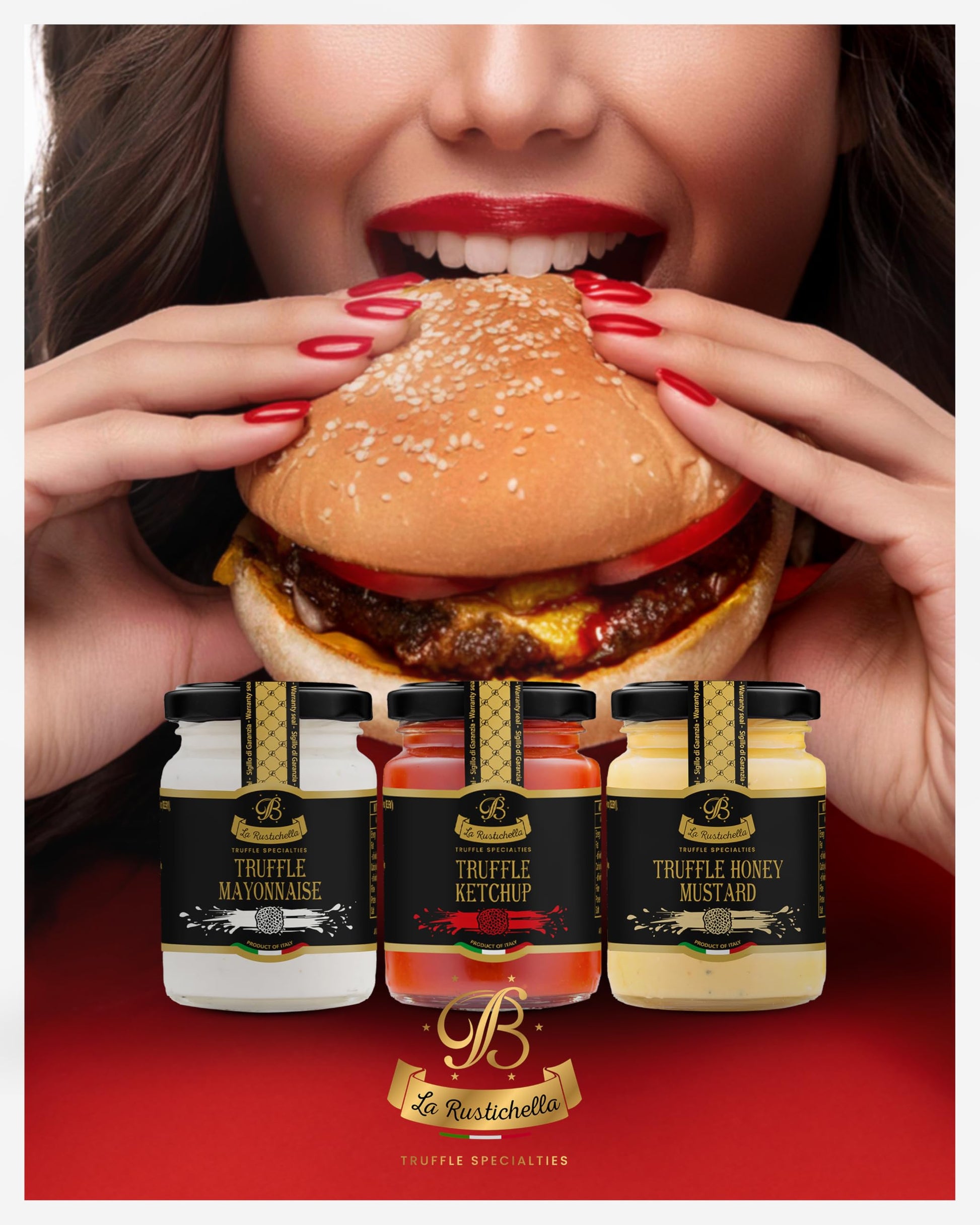 - Q: What are the key ingredients in La Rustichella Truffle Dip Sauces? A: La Rustichella Truffle Dip Sauces are made with premium ingredients, including real summer black truffle (Tuber Aestivum Vitt), honey mustard, mayonnaise, and ketchup. Each sauce combines traditional flavors with a gourmet twist, ensuring a unique taste experience.