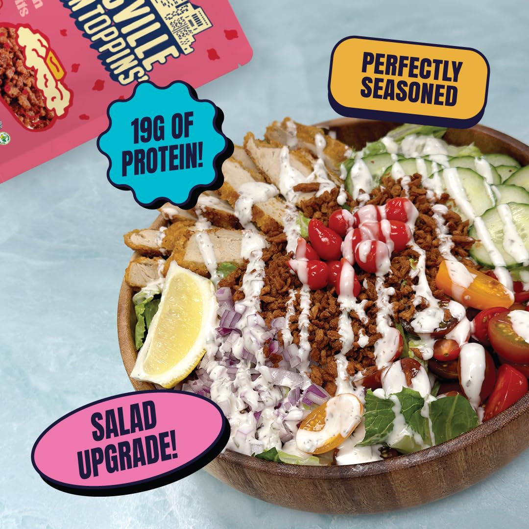 Louisville Vegan Jerky Toppins Bacon Bits 10 - Pack : Introducing Our Vegan Bacon Bits, The Guilt-Free Indulgence Youve Been Craving. Good For Your Taste Buds, Good For Your Animal Buds. Throw Them On Your Favorite Salad For Some Extra Protein, Fry 'Em Up Or Eat Them Straight Out Of The Bag For A Smoky, Salty Alternative To That Craveable Flavor You'Ve Been Praying For. Crafted With Premium Plant-Based Ingredients, These Savory Bits Deliver The Smoky, Crunchy, And Crispy Bacon Goodness (But Way Better). These Bacon Bits Are Packed With Protein And Perfect For Topping On Pizza, Salads, Potatoes, Breakfast, Or Even Straight Out Of The Bag. Whether Youre A Committed Vegan, A Flexitarian, Or Simply Seeking Out A Healthier Alternative Than The Original, Satisfy Your Niche With Our Deliciously Crunchy Bacon Bits. So Stinkin Tasty, Youll Want To Throw This On Everything. How Was It Born: In 2012 Our Founder, Stanley Chase, Forgot To Set A Timer On His Vegan Manapua Recipe And Overcooked The Bbq Soy Protein By Mistake. This Resulted In The First Batch Of Vegan Jerky We All Know And Love, Super Chewy And Delicious! - About Us: Louisville Vegan Jerky Is Sold In Stores All Over America, But We Still Make Each Bag The Same Way- In Small Batches, By Hand In Louisville, With High-Quality Ingredients. It'S A Difference You Can Taste, And A Cruelty-Free, American-Made Product That We'Re Proud To Call Our Own. Once You Try Our Jerky, Youll Understand Why Weve Been Around For 12 Years.