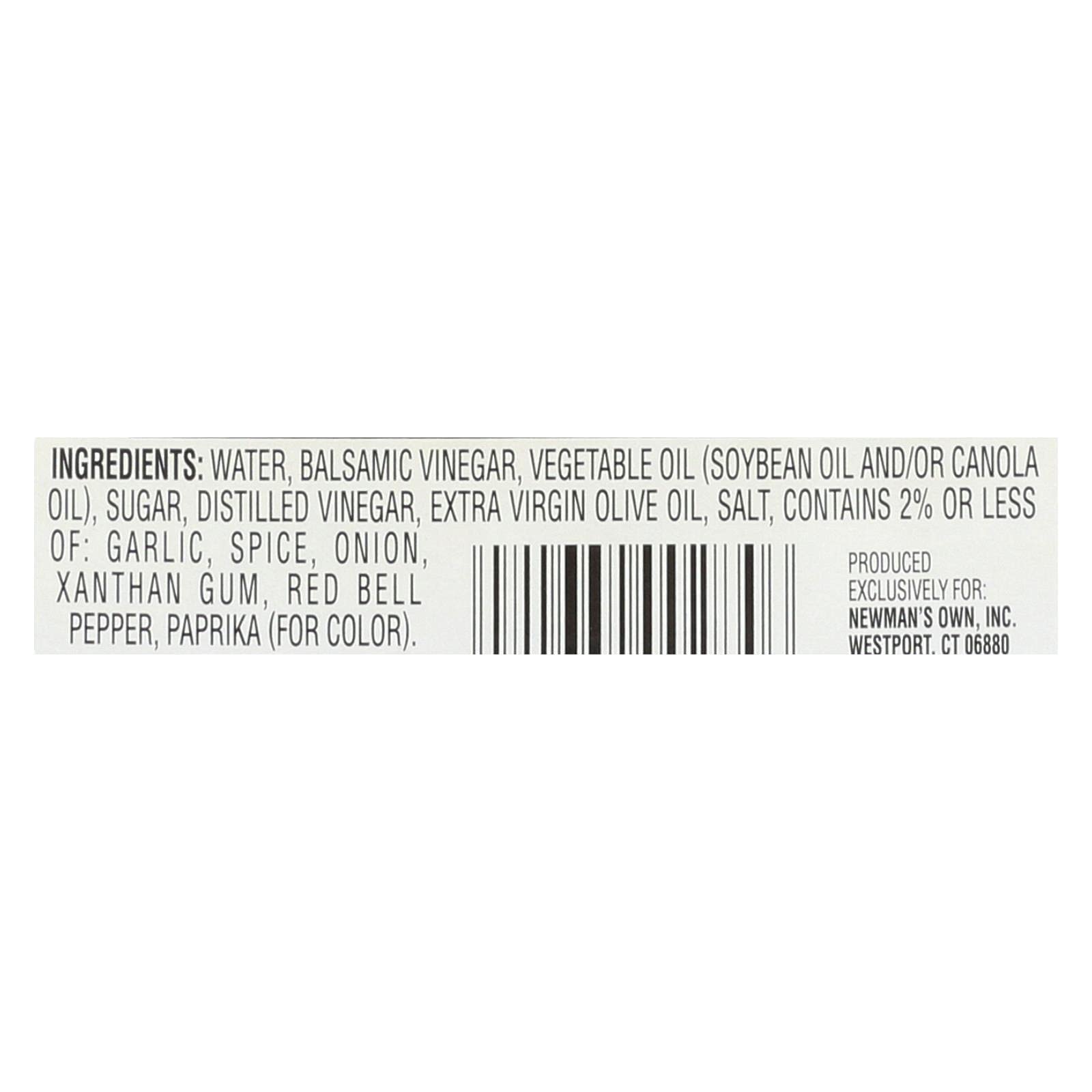 - Q: What is the size of the bottle and how many servings does it contain? A: Each bottle of Newman's Own Light Balsamic Vinaigrette contains 16 fl. oz. of product. Depending on usage, it typically offers multiple servings for salads and dressings.