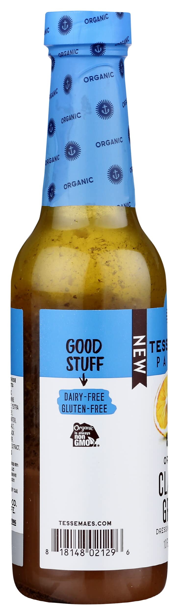 • Q: What size is Tessemae's Classic Greek Dressing, and how many servings does it provide? A: Tessemae's Classic Greek Dressing comes in a 10 Fl Oz bottle, which typically provides about 10 servings, allowing you to enjoy its vibrant flavors in multiple meals.