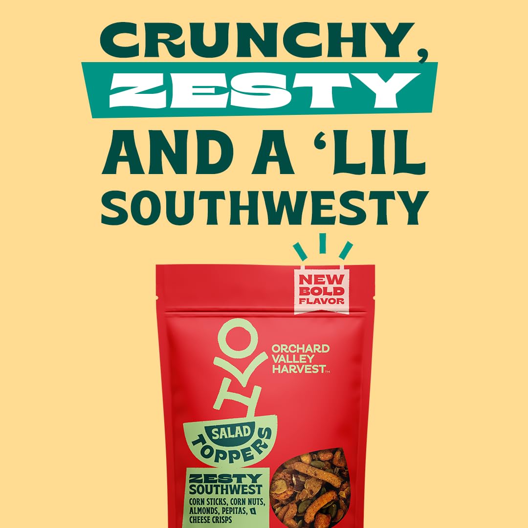 There'S Something Special About Visiting An Orchard To Pick Delicious Snacks Straight From The Trees. But, Getting To An Orchard May Not Be As Easy For You As It Is For Us. So Treat Yourself To The Next-Best-Thing - Orchard Valley Harvest Southwest. Delicious Sliced Almonds And Dried Sweetened Cranberries Come Together For A Tasty, Satisfying Snack. Add Salad Toppers To Almost Anything-Salad, Yogurt, Oatmeal And Cottage Cheese. Or Pack A Pouch For A Pick Me Up When You Are On The Go. Orchard Valley Harvest Is Dedicated To Finding Pure And Simple Nuts And Dried Sweetened Fruits That Support Your Healthy Lifestyle. Our Products Come Right From Mother Nature And Do Not Contain Any Artificial Colors, Flavors Or Preservatives. Whether You Prefer The Simplicity Of Whole Almonds, The Decadence Of Chocolate Covered Almonds Or Our Satisfying Blend Of Trail Mixes, You Can Count On Orchard Valley Harvest For A Delicious Snack To Enjoy In The Moment, Or On The Go.Experience The Joy Of Snacking Responsibly And Deliciously With Orchard Valley Harvest Salad Toppers - A Treat That Is As Delightful For Your Taste Buds As It Is For Your Conscience. Embark On A Truly Satisfying And Compassionate Snacking Journey.