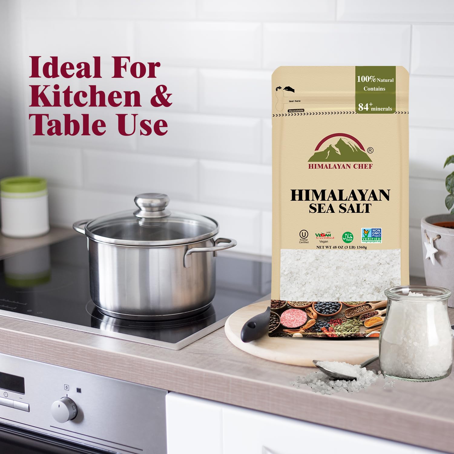 If youre looking for a sea salt that is versatile enough for using both as a table salt and in your favorite dishes and recipes, look no further than Himalayan Chefs fine ground Sea Salt. With a subtle flavor and delicious taste, its a great all-purpose salt to keep on hand in your kitchen. It can also be used for recipes, baking, pickling and much more. This fine ground sea salt comes in a pantry-friendly 48 oz. resealable bag. Himalayan Chef Sea Salt is authentic, unprocessed whole salt from pristine coastal regions. Its all natural, with no additives or processing beyond low temperature drying and grinding. Additionally, its a nutritious choice you can feel great about. Our classic sea salt is more nutritious than table salt, because it retains the natural balance and spectrum of essential minerals. A sprinkle of this sea salt is a healthy addition to any dish or recipe! Our fine ground sea salt is completely all natural and has no additives. Its not processed in any way beyond low temperature drying and grinding. This salt is also non-GMO Verified, certified Kosher, lower in sodium than table salt. Himalayan Chef Sea Salt is the original and most trust brand of sea salt, and is referenced in more culinary and nutritional books and journals than any other salt in the world.