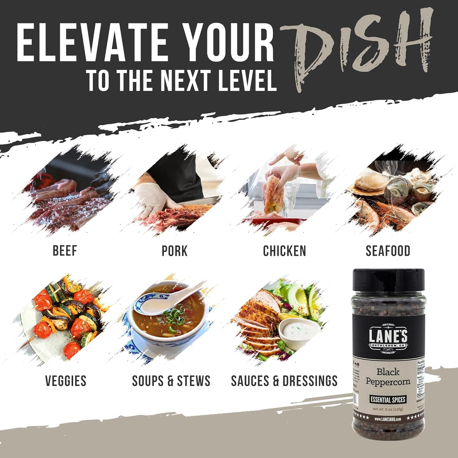 Lane'S Black Peppercorns, All-Natural Black Peppercorns For Grinder Refill, Goes Well With Stews, Black Pepper Corn Whole Spice, Made In Usa, 8 Oz Product Description: Introducing Lane'S Black Peppercorn - A Must-Have Addition To Your Culinary Arsenal. With Its Robust And Aromatic Flavor, This Premium Black Peppercorn Elevates Your Dishes To New Heights. The Versatile Usage Possibilities Make It Perfect For Seasoning Pork, Chicken, And Even Desserts, Adding A Rich And Savory Depth To Your Favorite Recipes. Crafted With Clean Ingredients And Gluten-Free, This Black Peppercorn Blend Ensures That Every Meal Is Infused With The Authentic, Homemade Flavors You Love. Experience The Time-Honored Tradition Of Black Peppercorn In Your Kitchen And Savor The Bold, Peppery Notes That Take Your Cooking To The Next Level.
