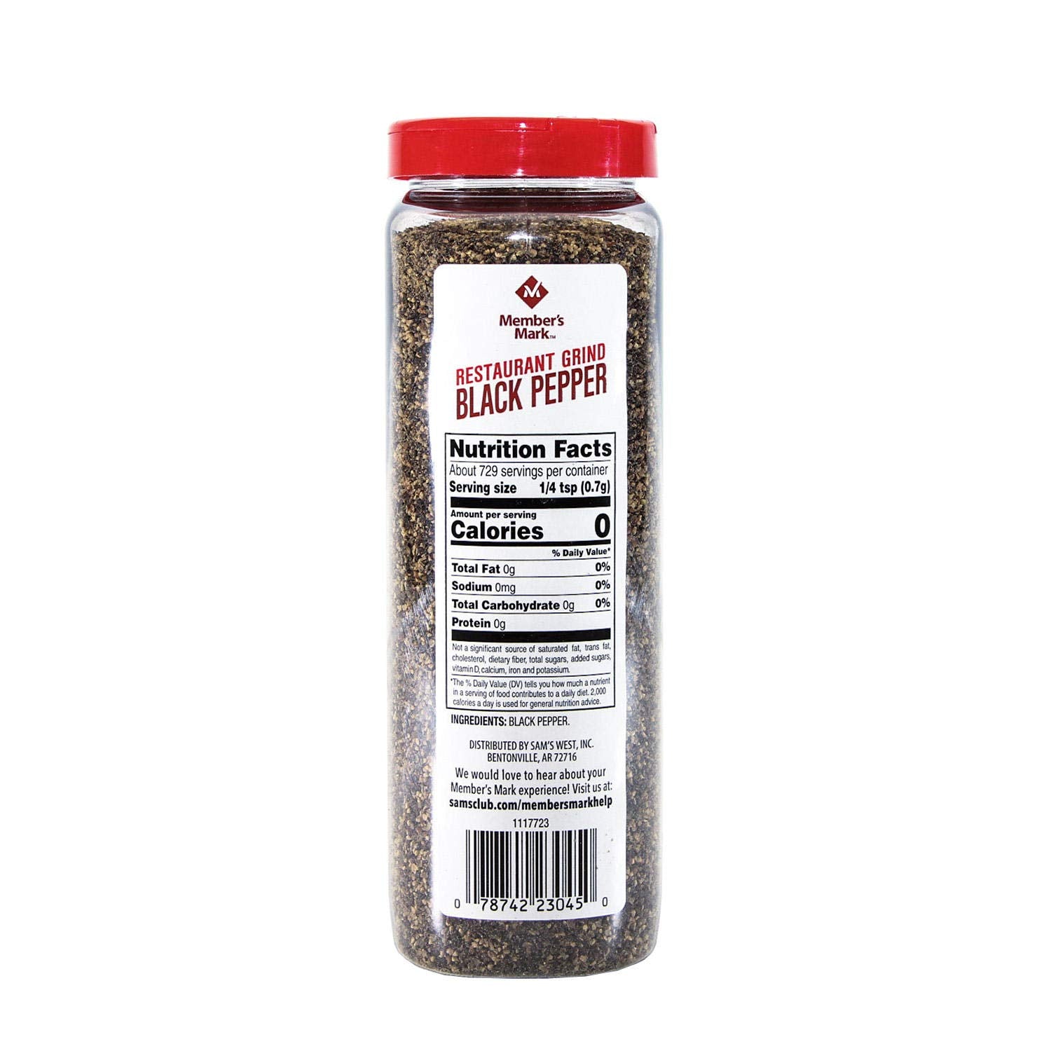 - Q: What makes Member's Mark Restaurant Black Pepper different from regular ground black pepper? A: Member's Mark Restaurant Black Pepper is ground slightly coarser than standard ground black pepper, which reduces dust and enhances its flavor profile. This makes it ideal for use in a variety of dishes, providing a more robust peppery bite.