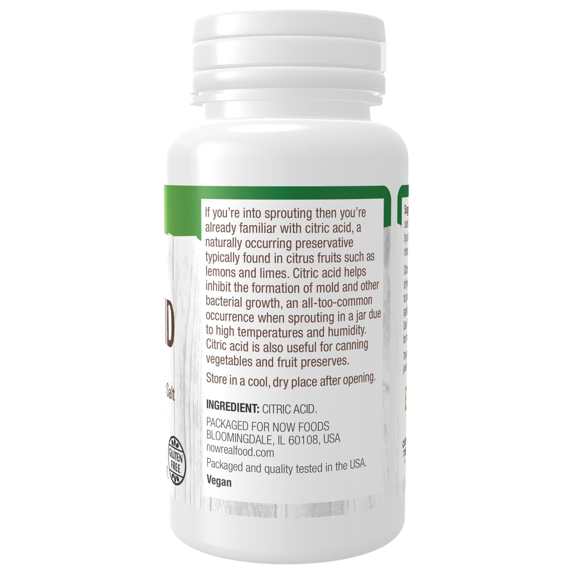 If youre into sprouting then youre already familiar with Citric Acid, a natural preservative typically found in citrus fruits such as lemons and limes. Citric Acid helps to inhibit the formation of mold and other bacterial growth, an all-too-common occurrence when sprouting in a jar due to high temperatures and humidity. Citric Acid is also useful for canning vegetables and fruit preserves.