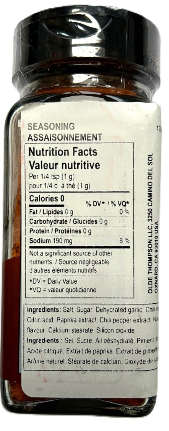 Salt balanced with Chili peppers, sugars and garlic add a unique flavor matrix that is good on everything that needs spicing up. Try it in soups, sauces, noodles, pizza, French fries, eggs and popcorn.