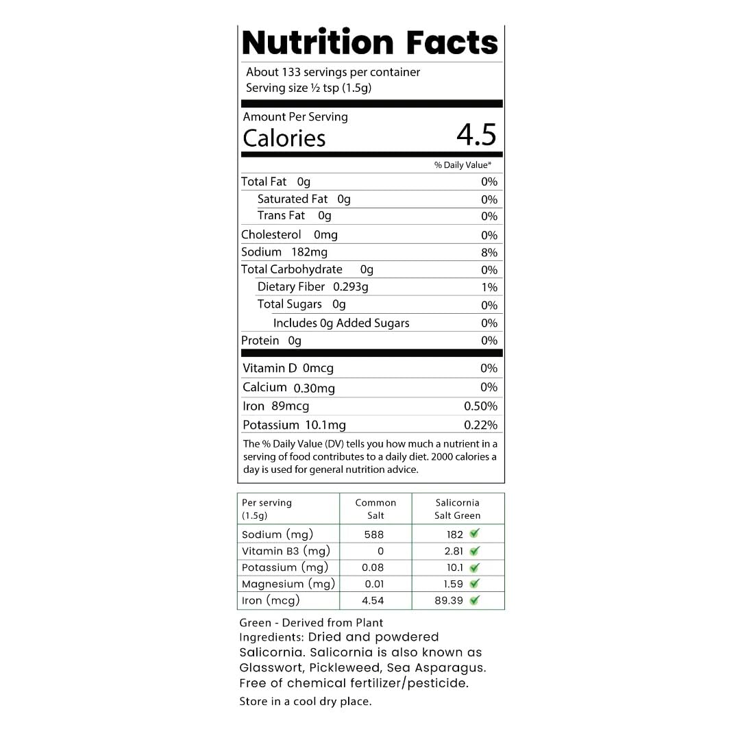 - Q: What is the packaging size of SaltWise Salicornia Salt? A: SaltWise Salicornia Salt is available in a pack of 2, with each container weighing 7.05 ounces (200 grams). This ensures you have enough salt substitute for multiple culinary creations.