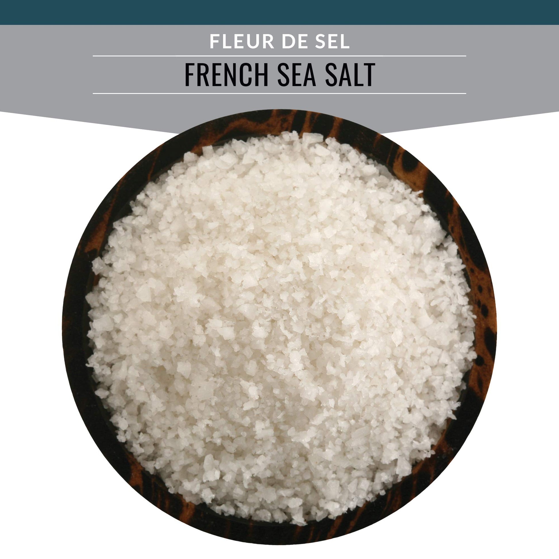 Delicate, moist and crunchy-Fleur de Sel is known as the caviar of salts by chefs around the world. The result of a cool evening wind gently blowing across the surface of salt ponds in Guerande, France, delicate crystals blossom quickly and are gathered early in the morning using traditional wooden tools. This tender harvesting process leaves the crystals intact and helps them retain their natural moisture. Used by cooks worldwide when seasoning their favorite foods, Fleur de Sel is one of the most treasured finishing salts for gourmet dishes, adding subtle salinity and crunch, and in spice & herb blends, as it helps to breakdown herbs and open up their flavor.