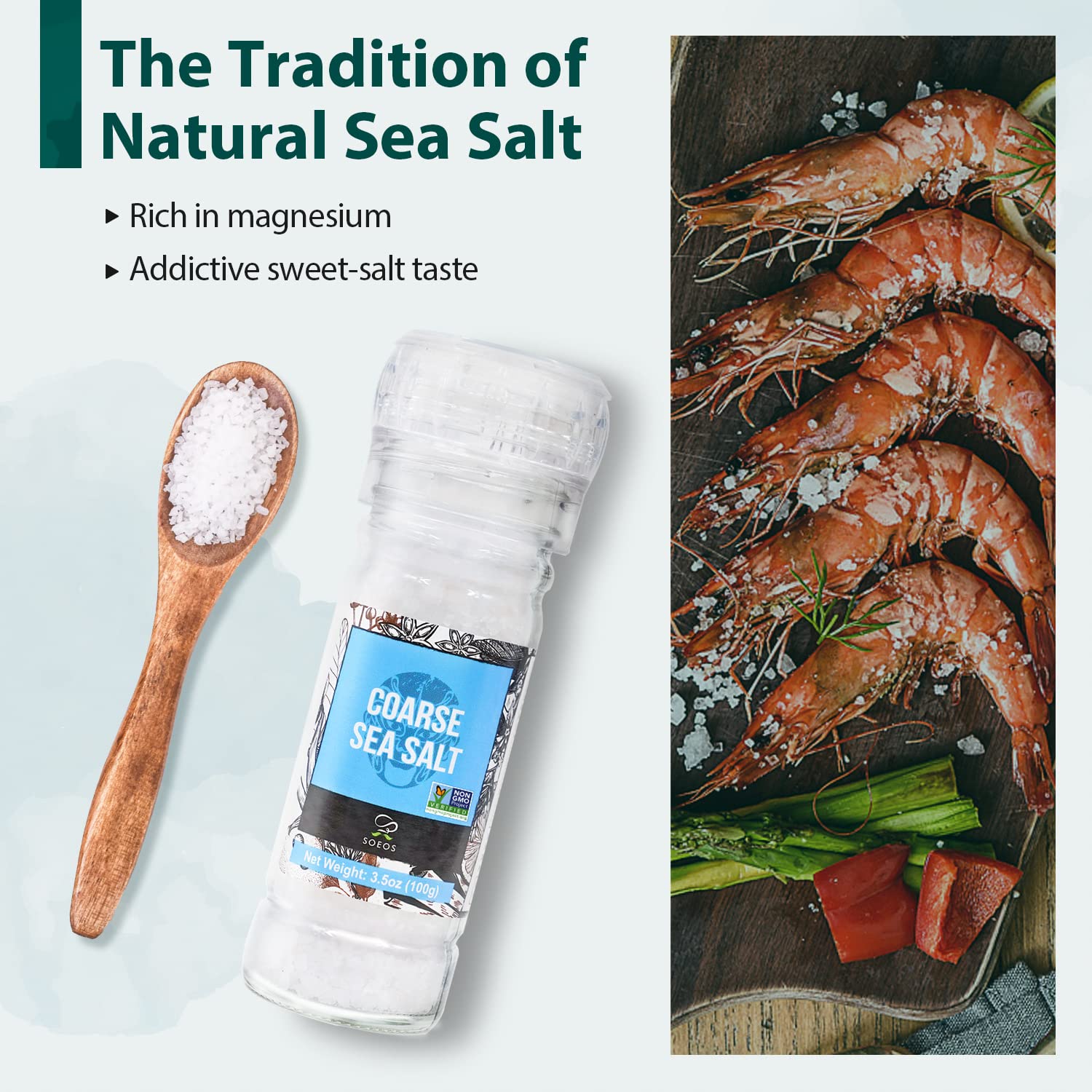 View compareSoeos Black Peppercorns + White Sea Salt + Rainbow Peppercorns + Pink Salt, 10.6oz (300.50g), Salt and Pepper Set, Spice Grinder