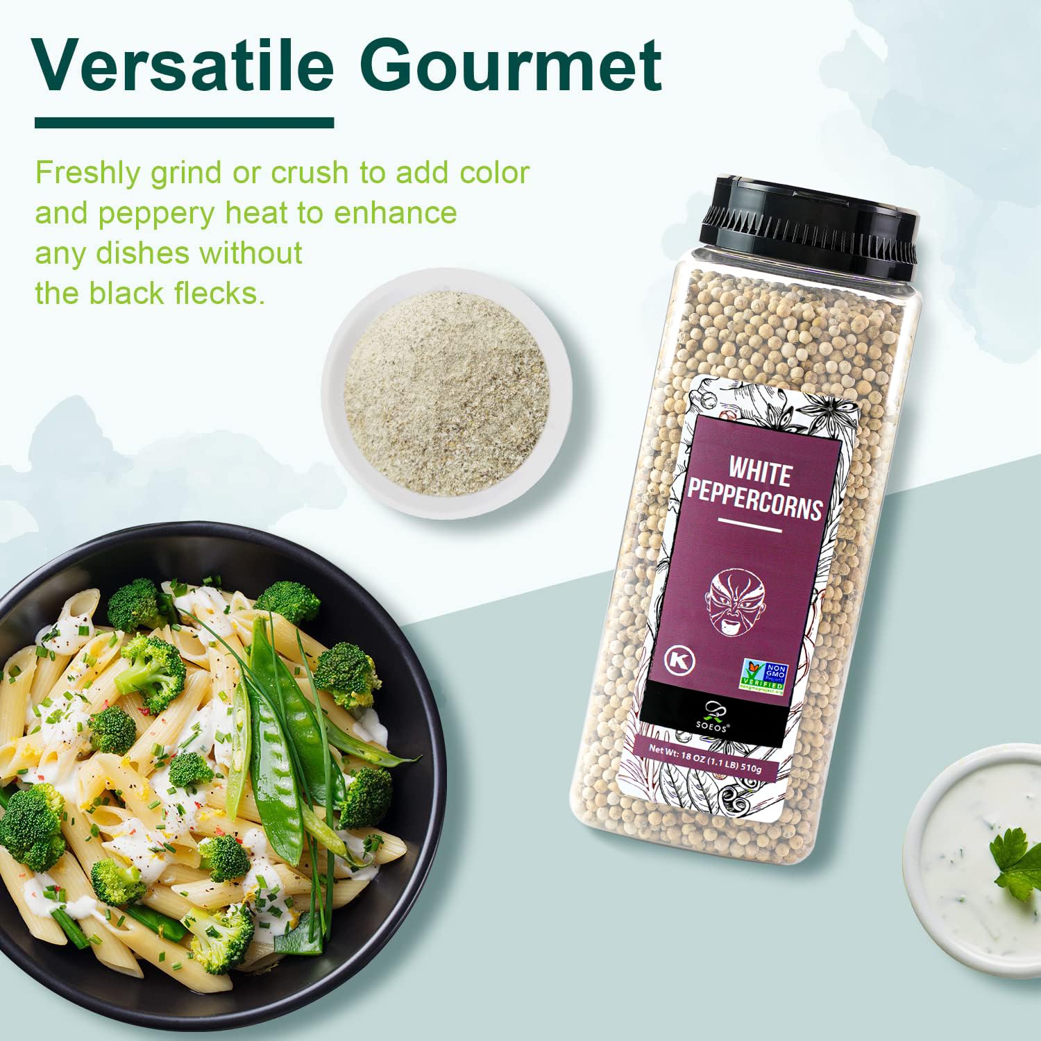 View compareSoeos White Peppercorns, 18oz (Pack of 1), Non-GMO, Kosher, Packed to Keep Peppers Fresh, Peppercorn for Grinder Refill, Whole P
