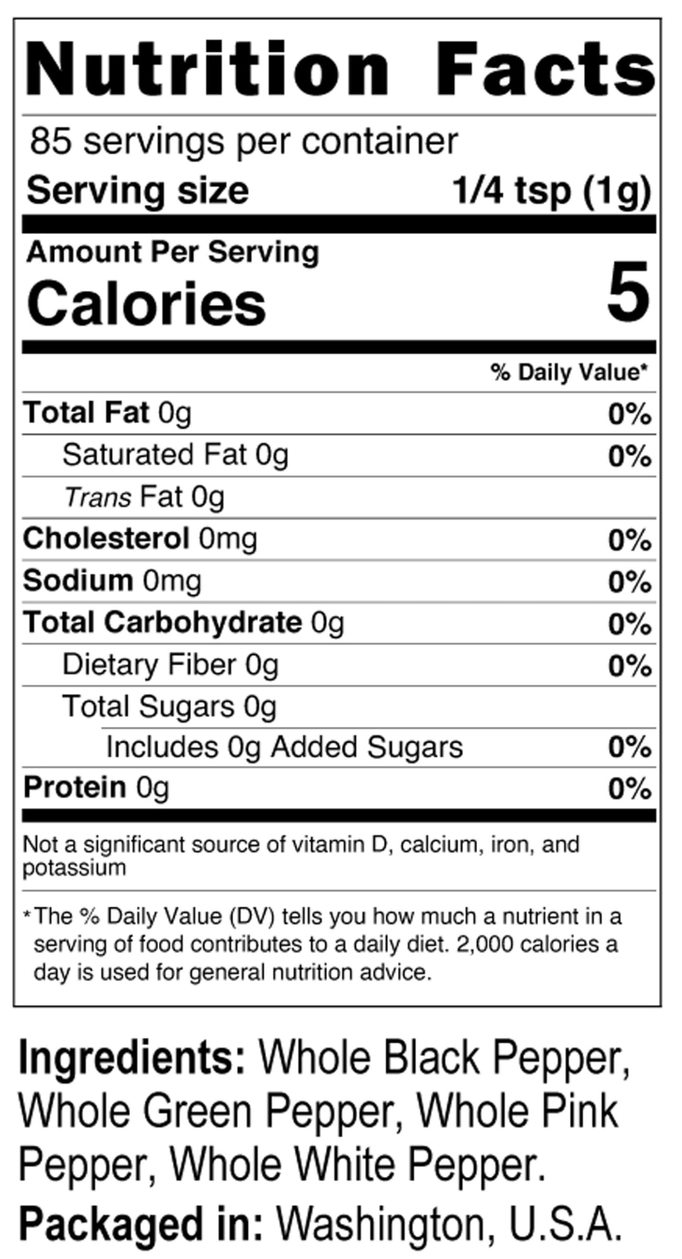 - Q: Where are the ingredients for the Rainbow Peppercorns sourced from? A: The Viva Doria Rainbow Peppercorns are selectively sourced from around the world, including hand-harvested black and green peppercorns from India, white peppercorns from Malaysia, and pink peppercorns from Brazil. This careful sourcing ensures a high-quality blend.
