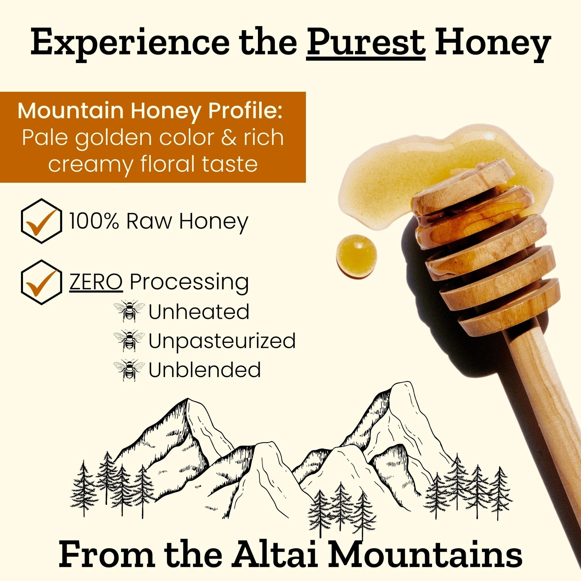 - Q: What makes Altay Raw Mountain Honey different from regular honey? A: Altay Raw Mountain Honey is 100% pure, unfiltered, and unpasteurized, preserving its natural enzymes, vitamins, and antioxidants. Unlike regular honey, it is harvested from the pristine Altai region, ensuring it is free from additives and chemicals, resulting in a superior flavor and health benefits.