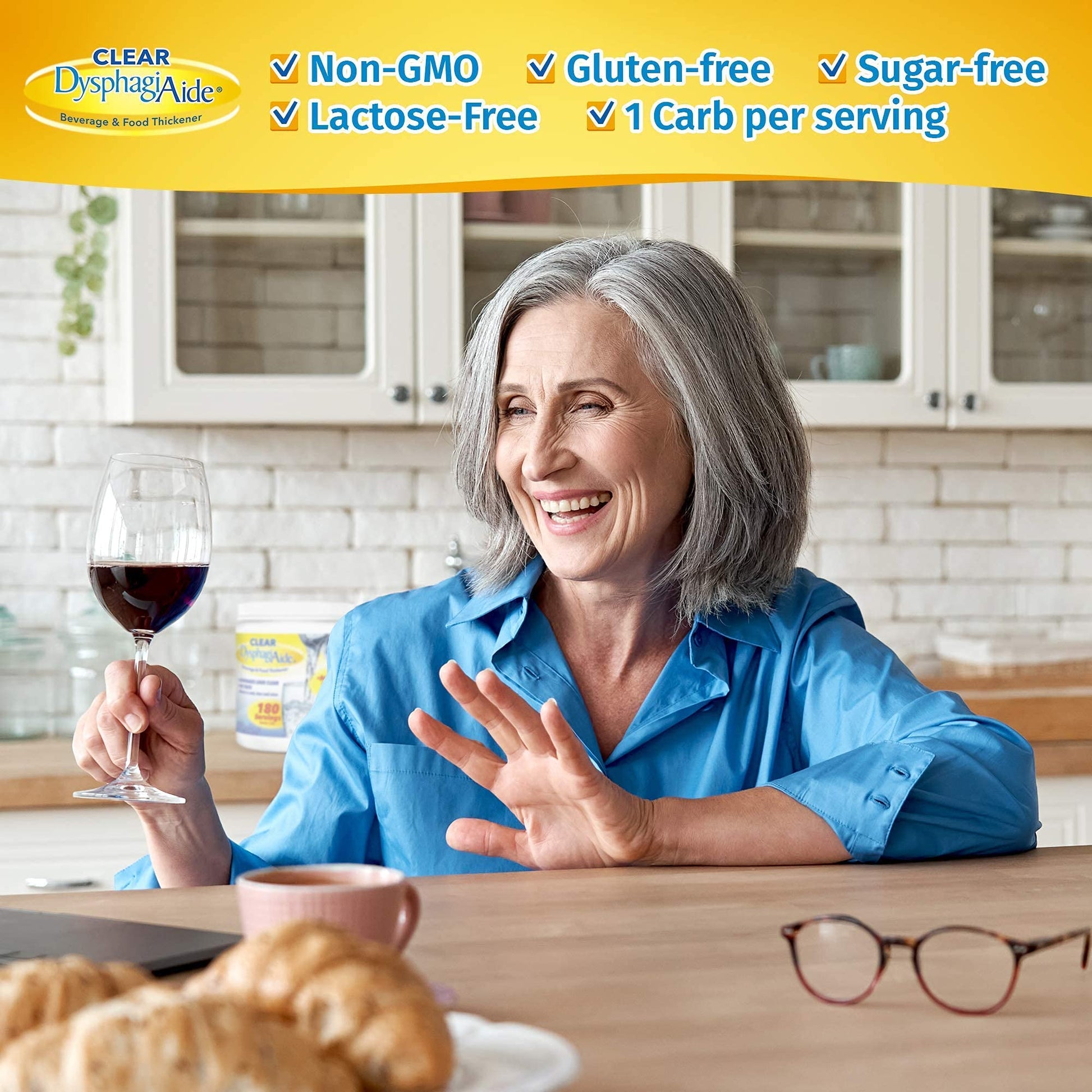 - Q: Is the thickener gluten-free and safe for different diets? A: Yes, Clear DysphagiAide is made with high-quality ingredients that are Non-GMO, Gluten Free, Sugar Free, and Lactose Free. It contains only 1 carb per serving, making it suitable for many dietary needs.